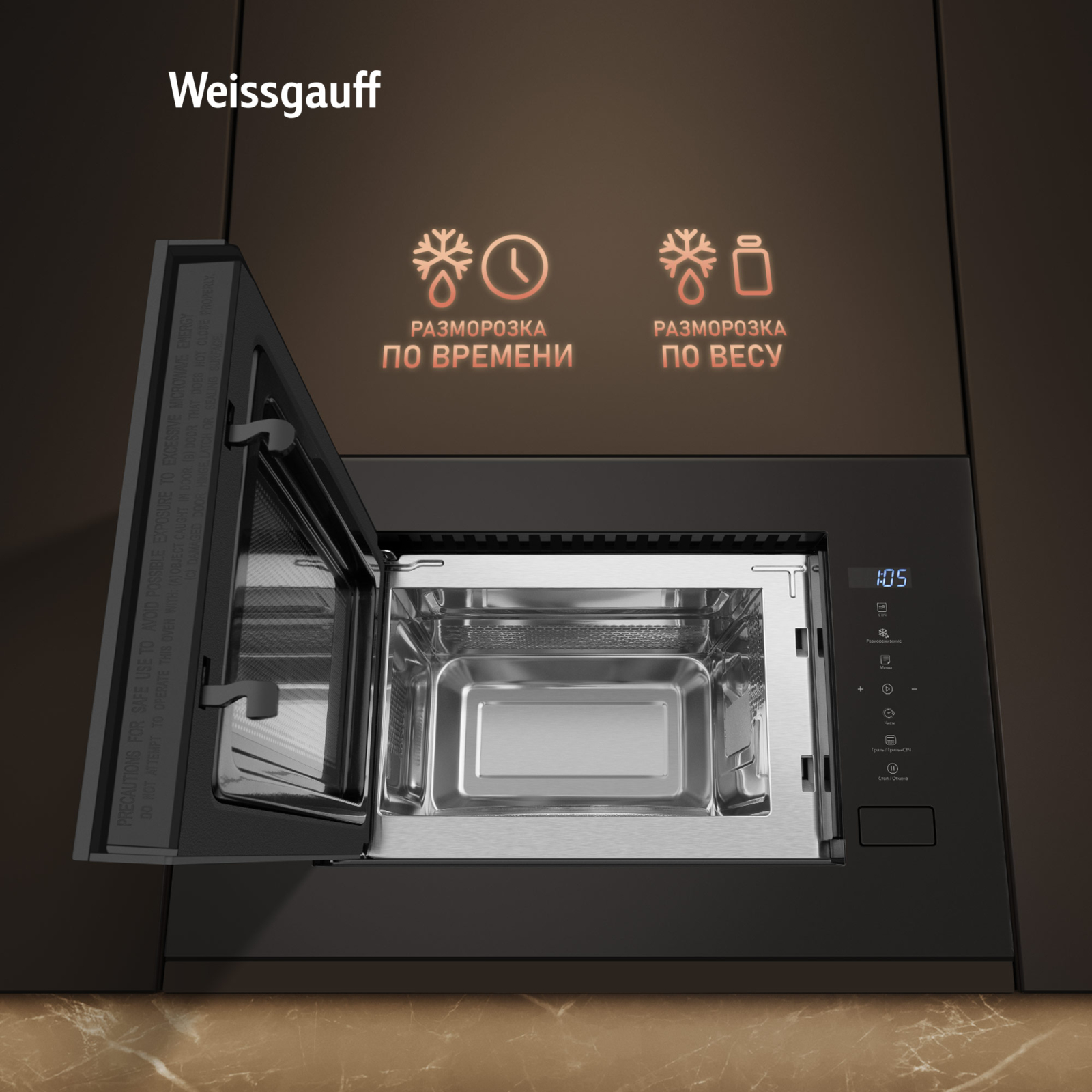 Встраиваемая микроволновая печь Weissgauff с объемом 20 литров, выполненная в черном цвете, равномерно разогревает еду при помощи поворотного стола, а также оснащена грилем с возможностью работы в комбинированном режиме!