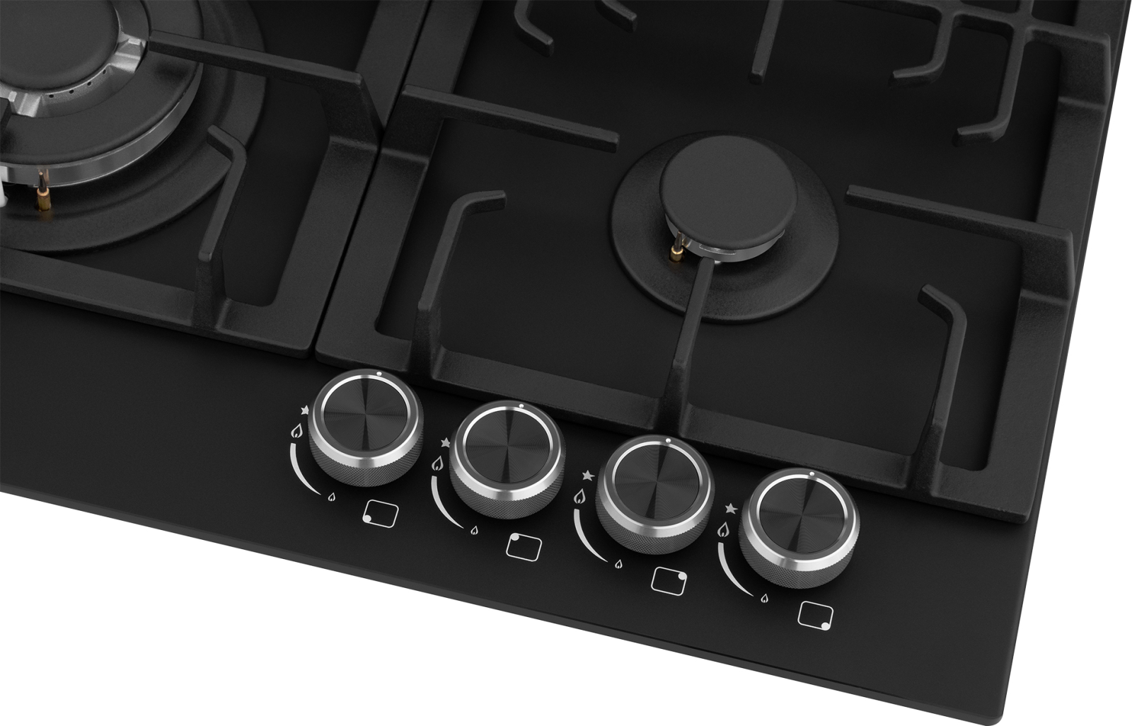 Газ-контроль каждой конфорки обеспечивает безопасность: в случае, если пламя погасло, подача газа будет автоматически прекращена!