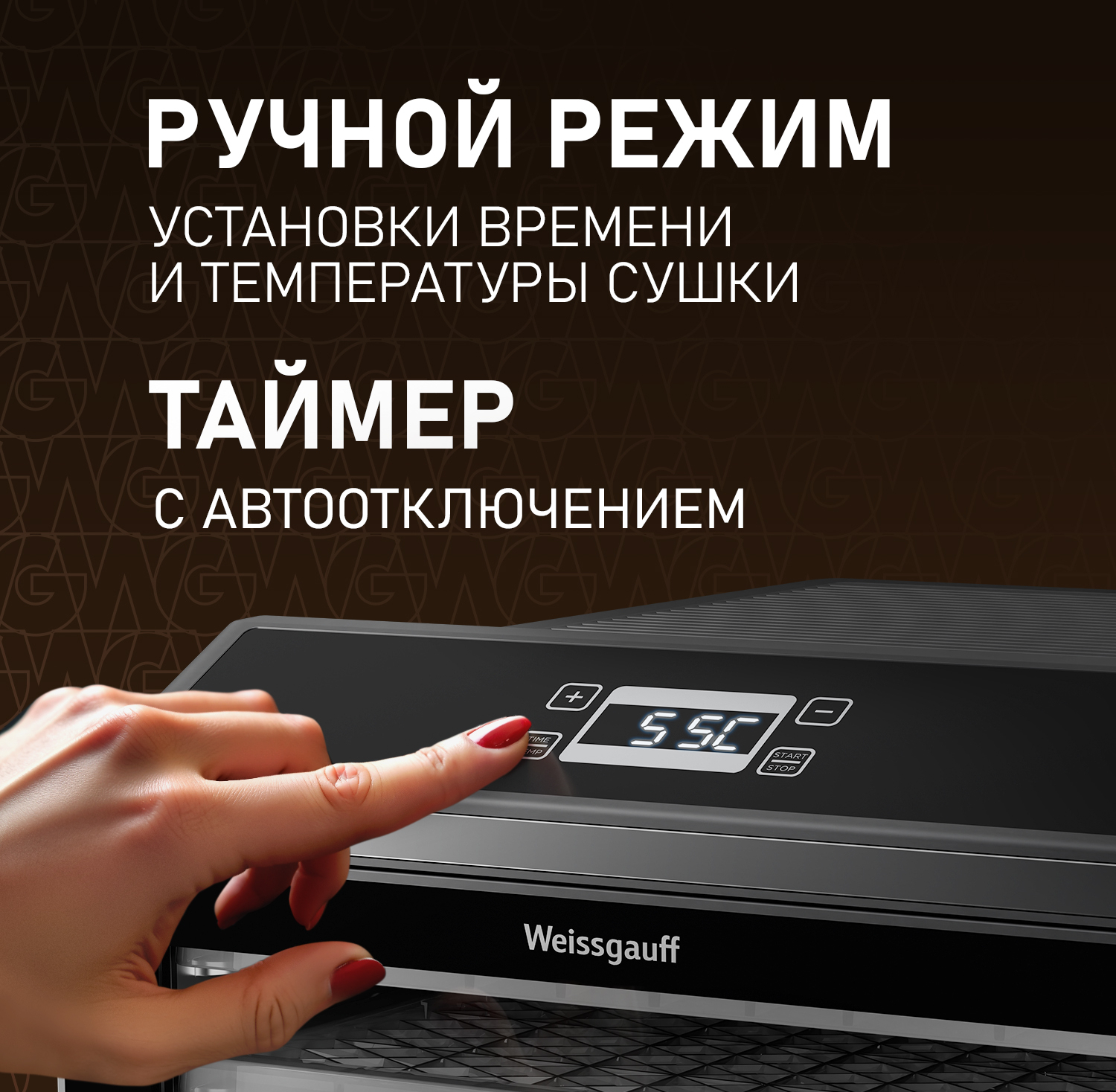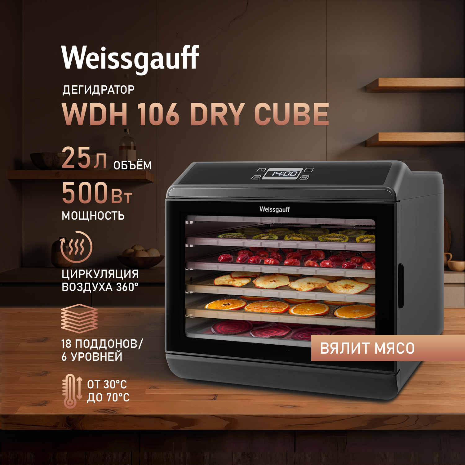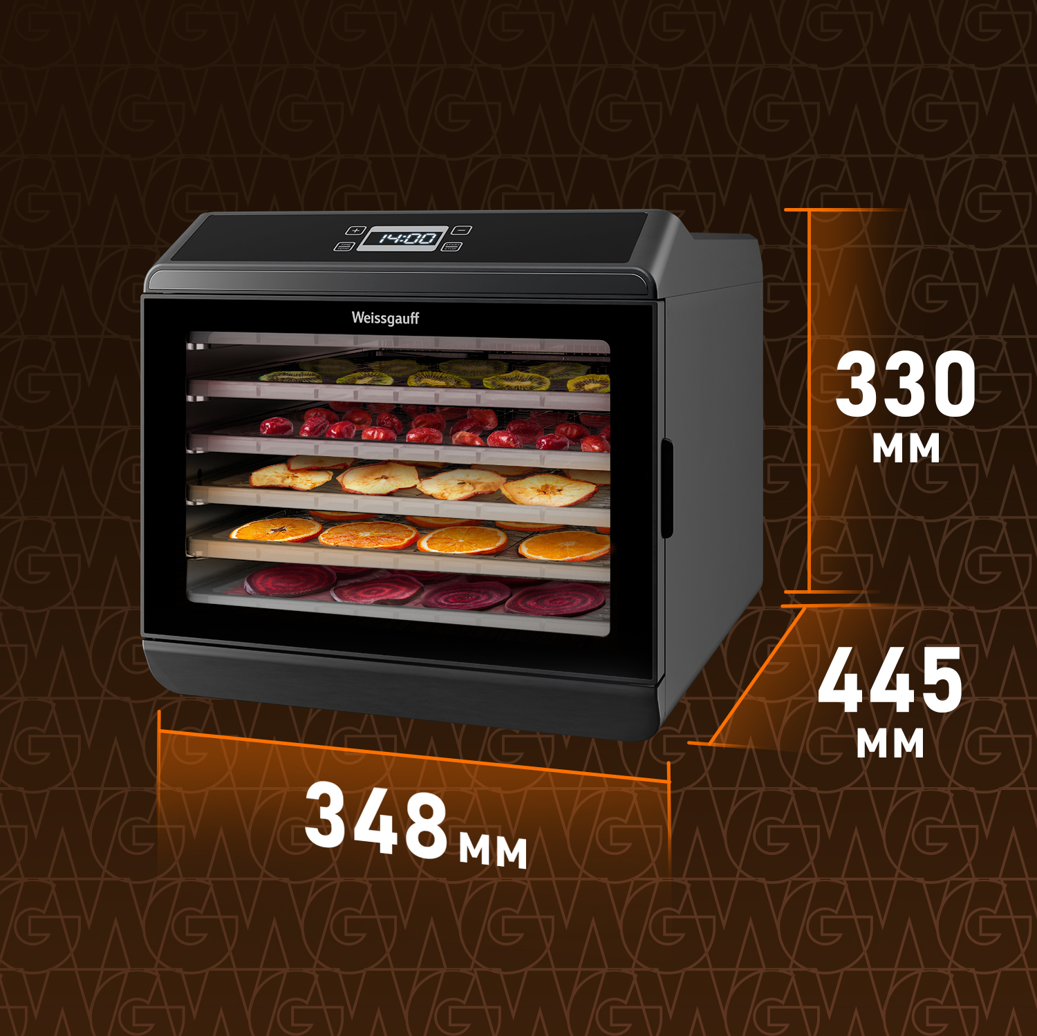 Дегидратор от Weissgauff -это инновационное решение для вашей кухни, открывающее новые горизонты в процессе обезвоживания продуктов растительного и животного происхождения. С его помощью вы сможете создавать разнообразные продукты: овощные и фруктовые чипсы, хлебцы, пастилу, а также сушёное и вяленое мясо и рыбу. Современный и стильный дизайн устройства станет украшением любой кухни. Его компактные размеры, объём 25 литров и мощность 500 Вт позволяют разместить его в любом уголке кухни.