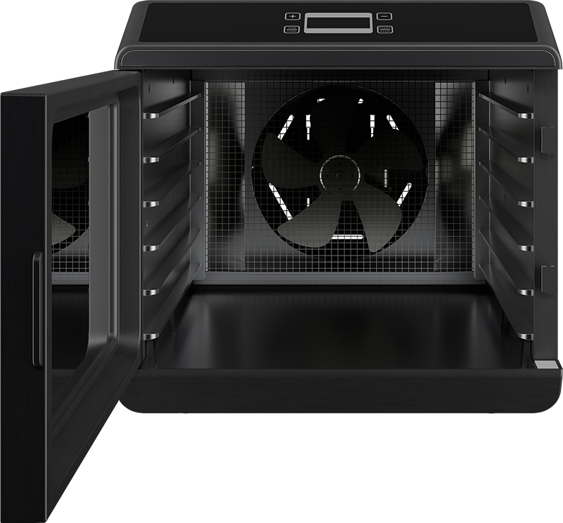• Современный дизайн, делает этот дегидратор не только функциональным устройством, но и по-настоящему восхитительным предметом интерьера, сочетающим в себе высокий стиль и благородство вашего вкуса!