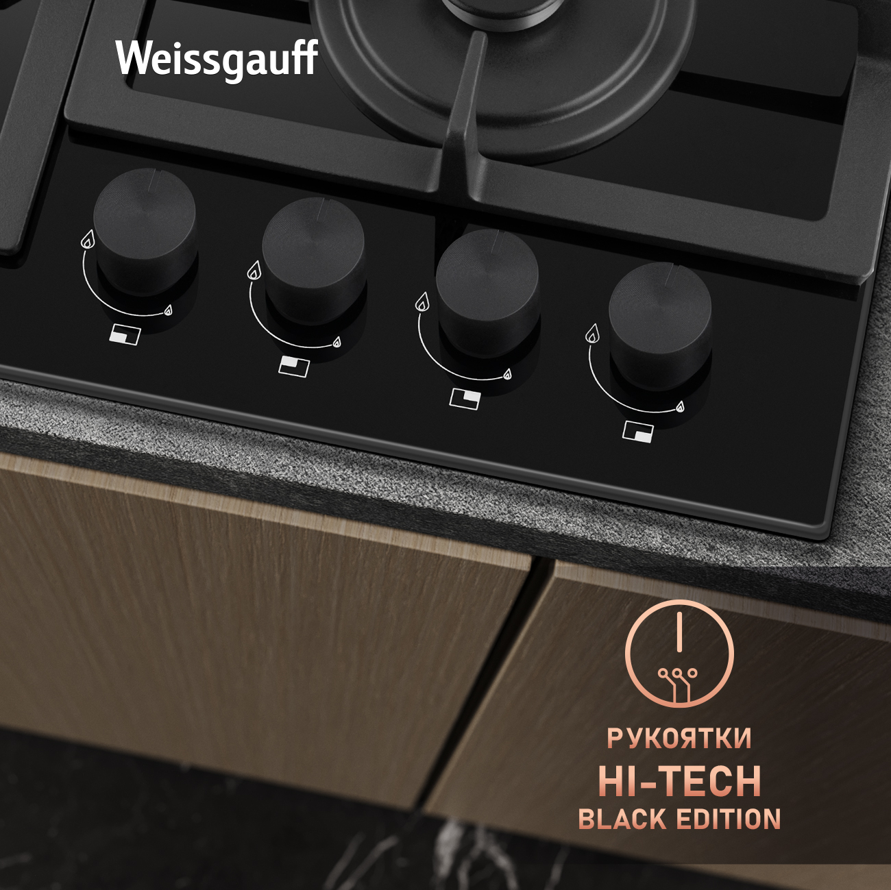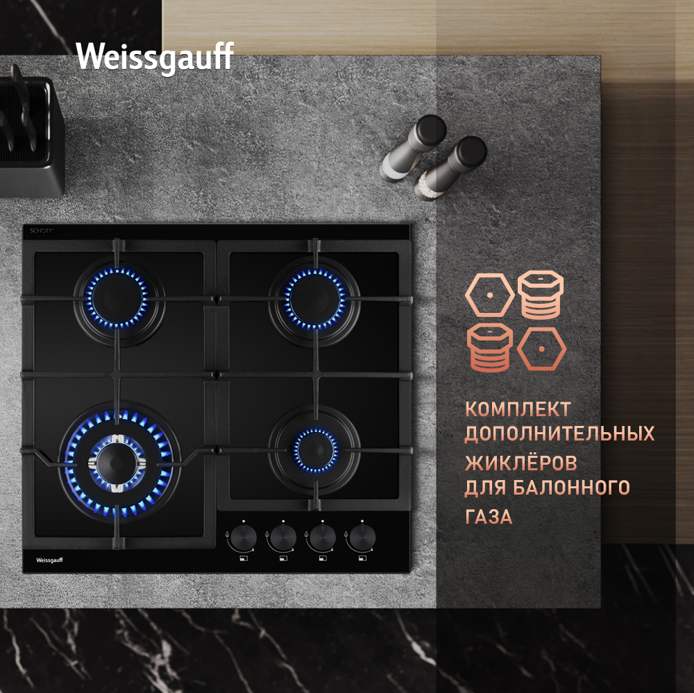 Встраиваемая независимая газовая панель Weissgauff шириной 60 см, исполненная в закалённом чёрном стекле с дизайном BLACK EDITION- это стильное и компактное решение для вашей кухни!