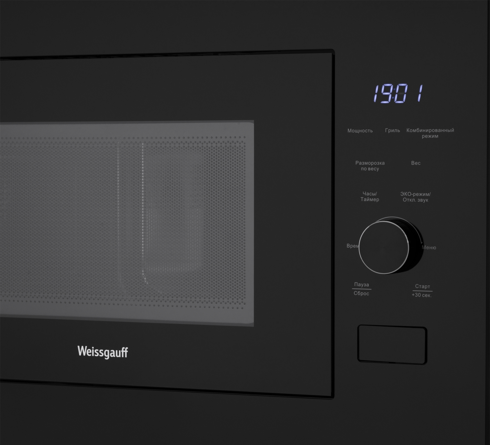 Встраиваемая микроволновая печь Weissgauff с объемом 25 литров, выполненная в черном цвете, равномерно разогревает еду при помощи поворотного стола, а также оснащена грилем с возможностью работы в комбинированном режиме и набором программ автоменю!