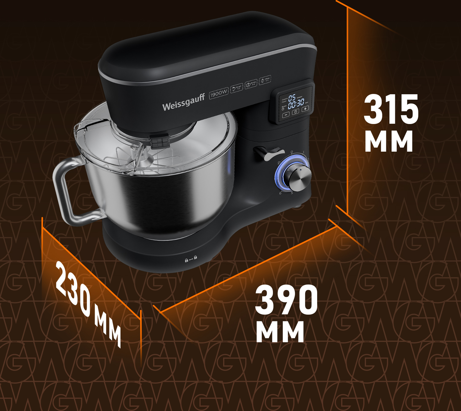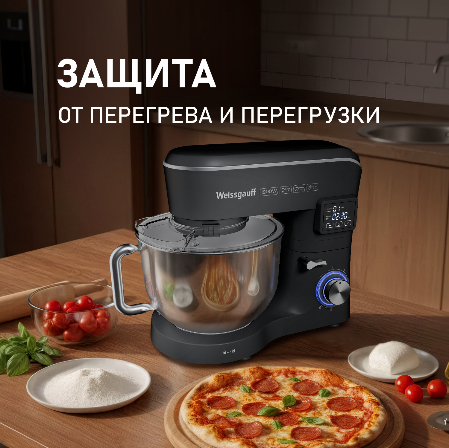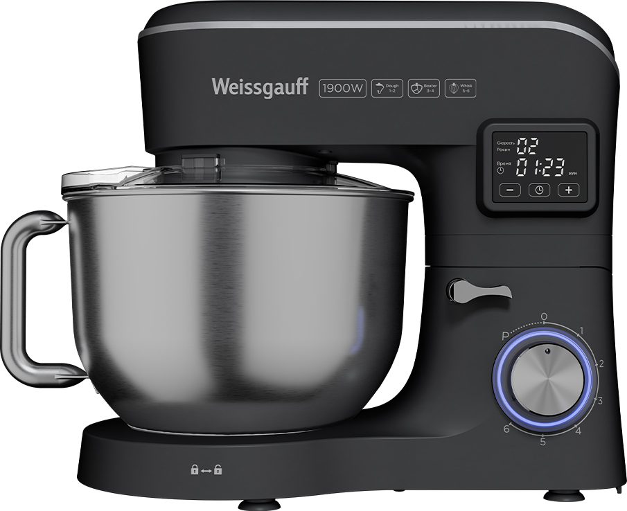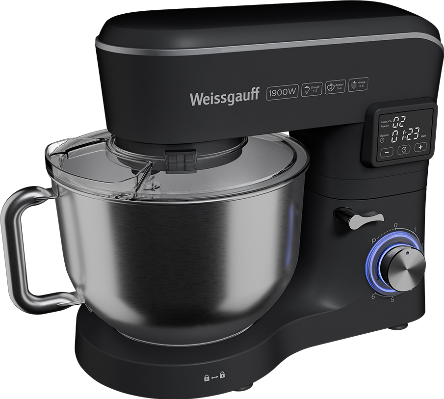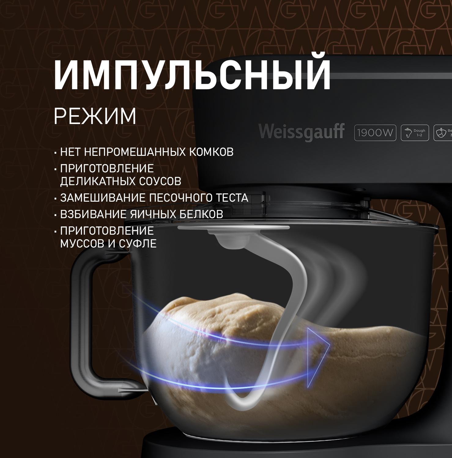 Электрический планетарный миксер от Weissgauff, обладающий впечатляющей мощностью 1900 Вт, оснащенный набором насадок для теста и для смешивания, венчиком для взбивания, а также удобной чашей с крышкой - это незаменимый помощник на вашей кухне, который поможет вам воплотить в реальность самые смелые кулинарные идеи!
