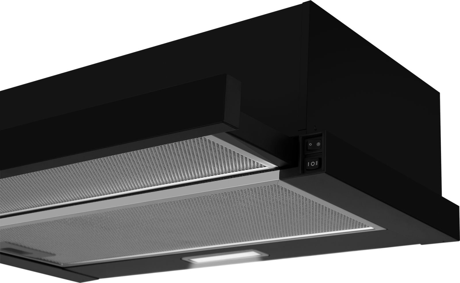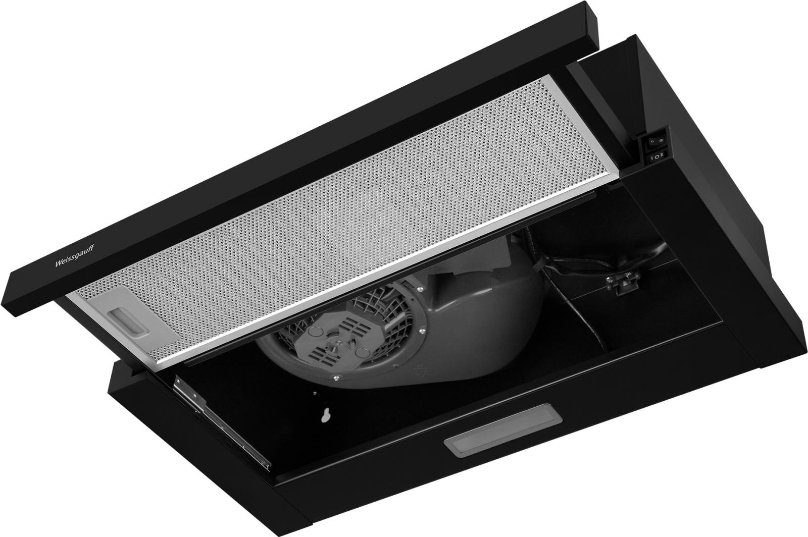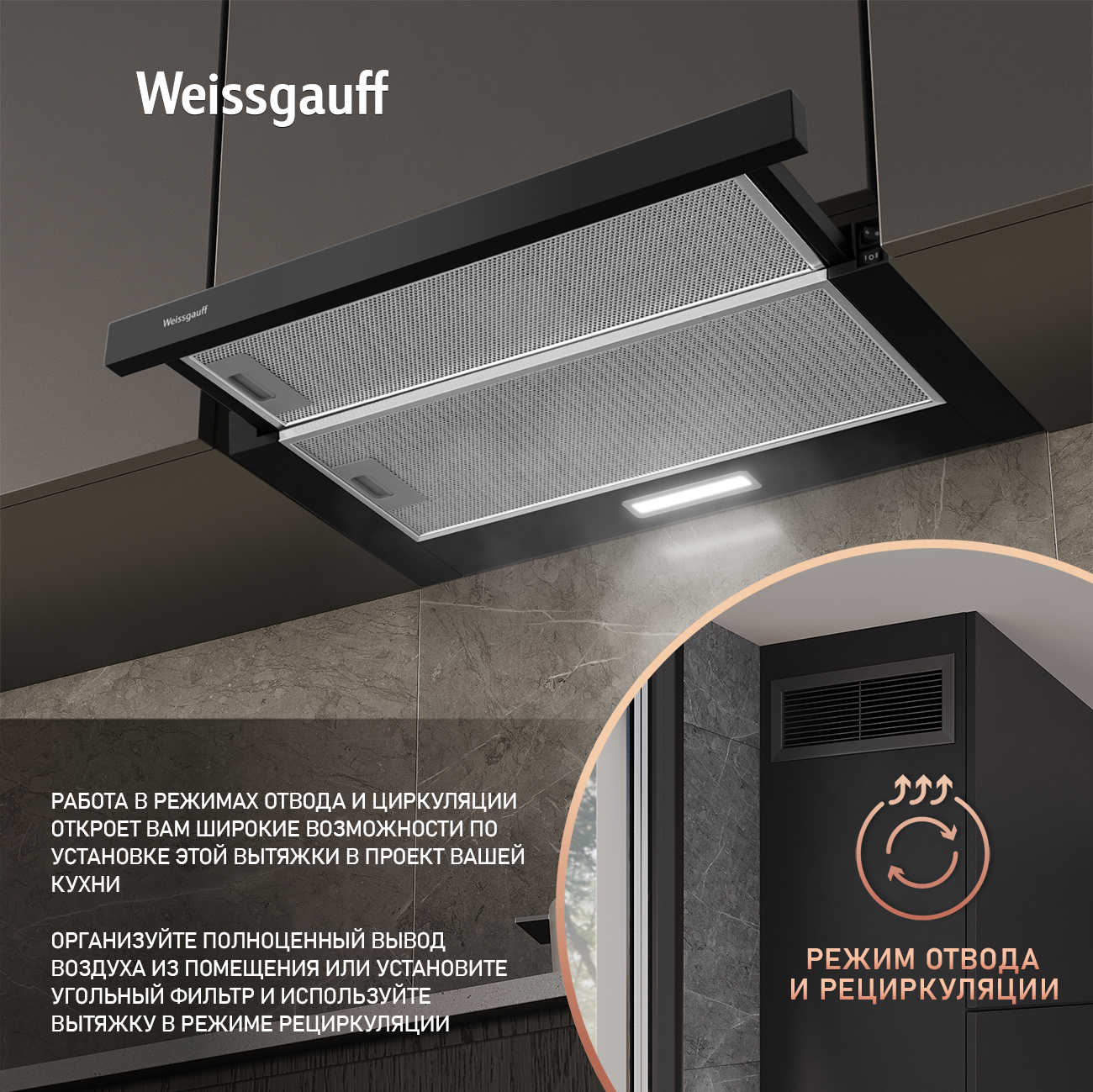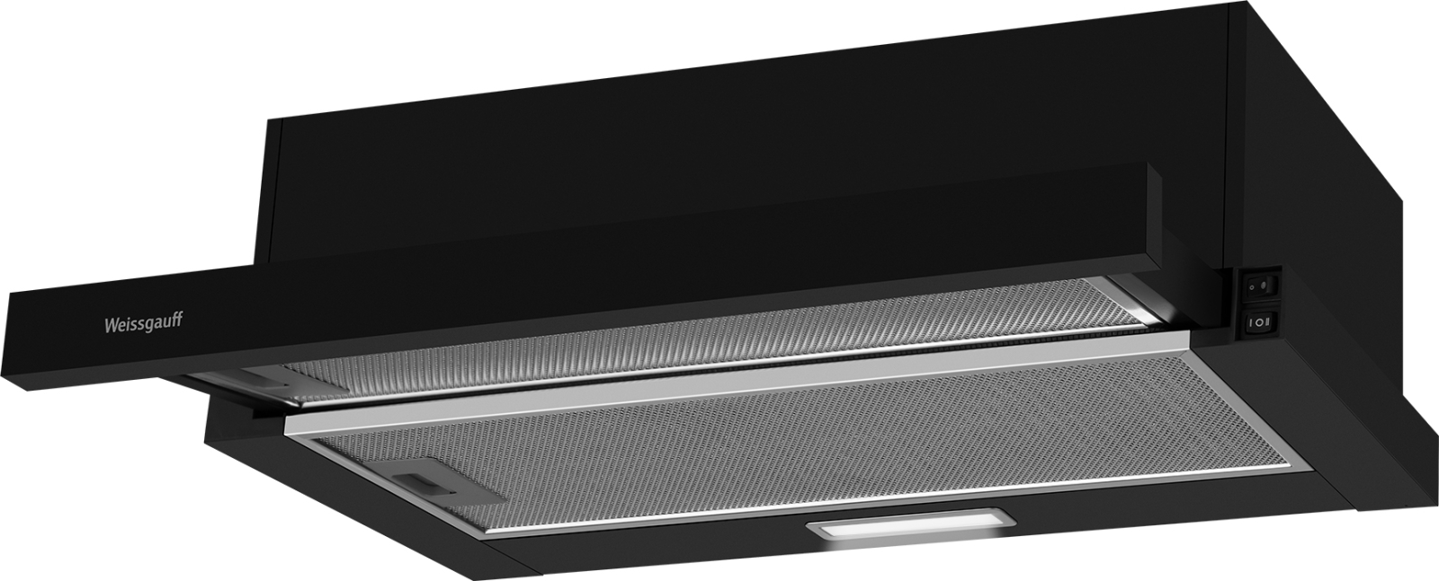Встраиваемая в верхний подвесной шкаф телескопическая вытяжка от Weissgauff, обладающая впечатляющей производительностью 600 м3/ч и низким уровнем шума , выполненная в чёрном цвете, не только порадует своей функциональностью, но и станет настоящим украшением вашей кухни!