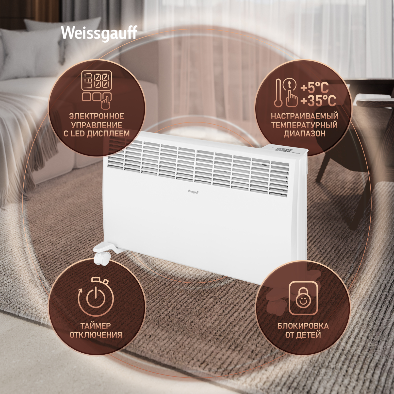 Электрический конвектор Weissgauff WCHE 2000 Touch представляет собой инновационное решение в области климатической техники, предназначенное для создания комфортных температурных условий в жилых и коммерческих пространствах. Конвектор обладает высокой эффективностью и способен обеспечивать равномерное отопление помещений площадью до 25 квадратных метров и сочетает в себе стильный дизайн и передовые технологические решения, что делает его надежным и функциональным элементом системы обогрева!