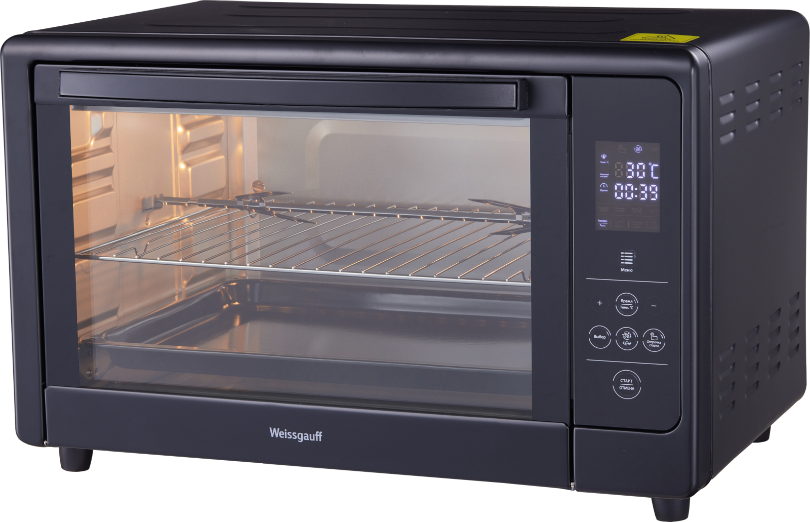 Компактная мини-печь Weissgauff объемом 48 литров, выполненная в черном цвете, оснащенная электронным управлением — идеальная замена духовке как для одного человека, так и небольшой семьи, а благодаря регулировке температуры и таймеру станет незаменимым помощником как дома, так и на даче!