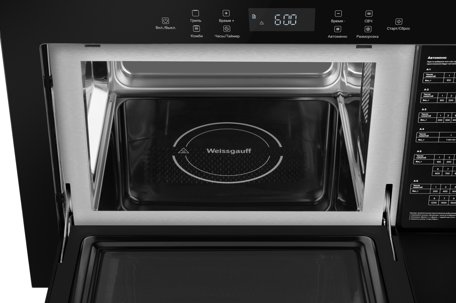 • Дизайн, выполненный в черном цвете, станет финальным штрихом в совершенстве великолепного облика этой модели. Каждый раз, взаимодействуя с вашей микроволновой печью от Weissgauff, вы будете чувствовать, что это не только функциональное устройство, но и настоящее украшение вашей кухни!