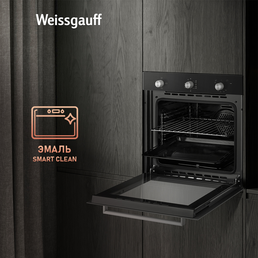 Газовый духовой шкаф от Weissgauff, выполненный в черном закаленном стекле, оснащённый механическими поворотными рукоятками Soft Switch и 3 режимами, буквально олицетворяет собой уверенность в надёжном и функциональном оснащении вашей кухни!