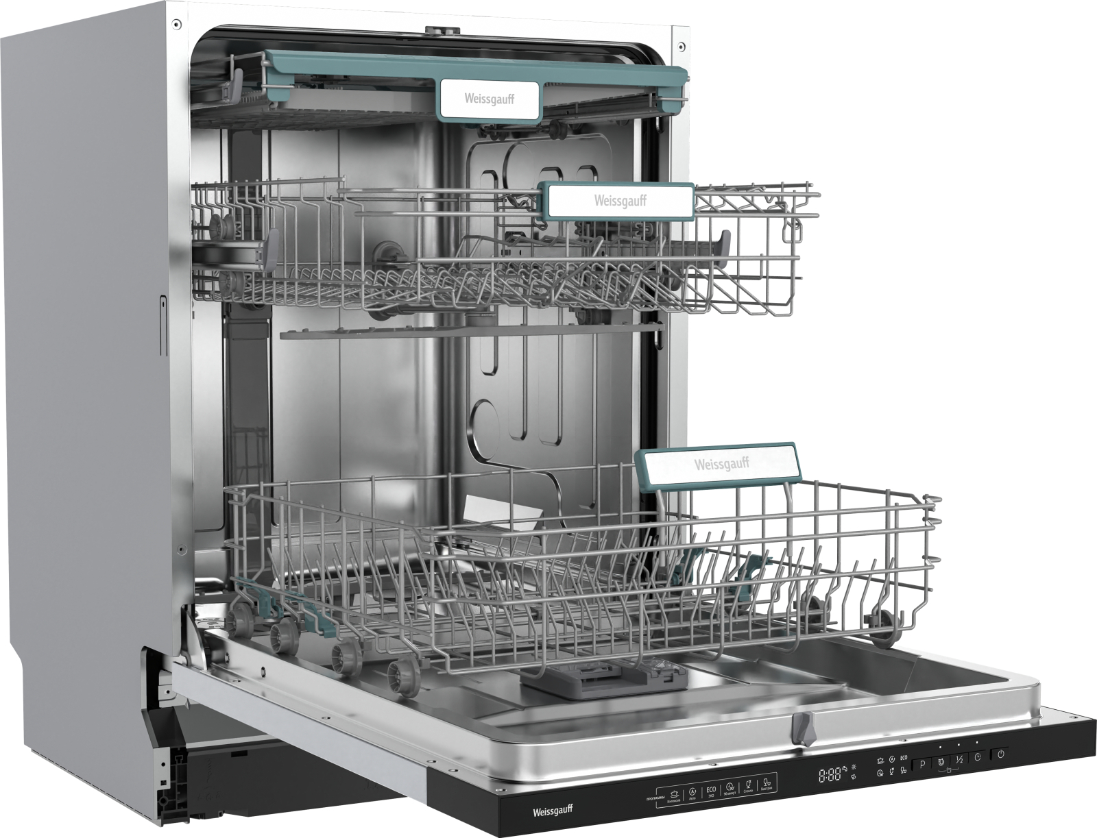 Корзины в дизайне "ECO LIFE" с легендарным узнаваемым оттенком зеленого цвета, отражают концепцию экологичности подходов Weissgauff к созданию бытовой техники! Забота о здоровье пользователя, безопасность используемых материалов и безукоризненно высокое качество мытья посуды - все это реализовано в данной модели посудомоечной машины!