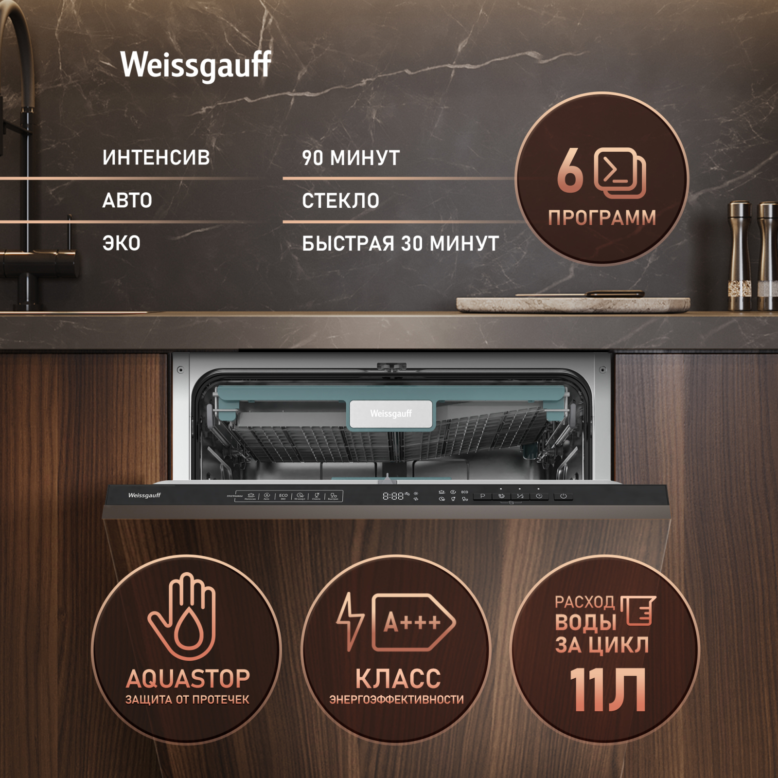 | Защита от протечек : | Полная,Aquastop |