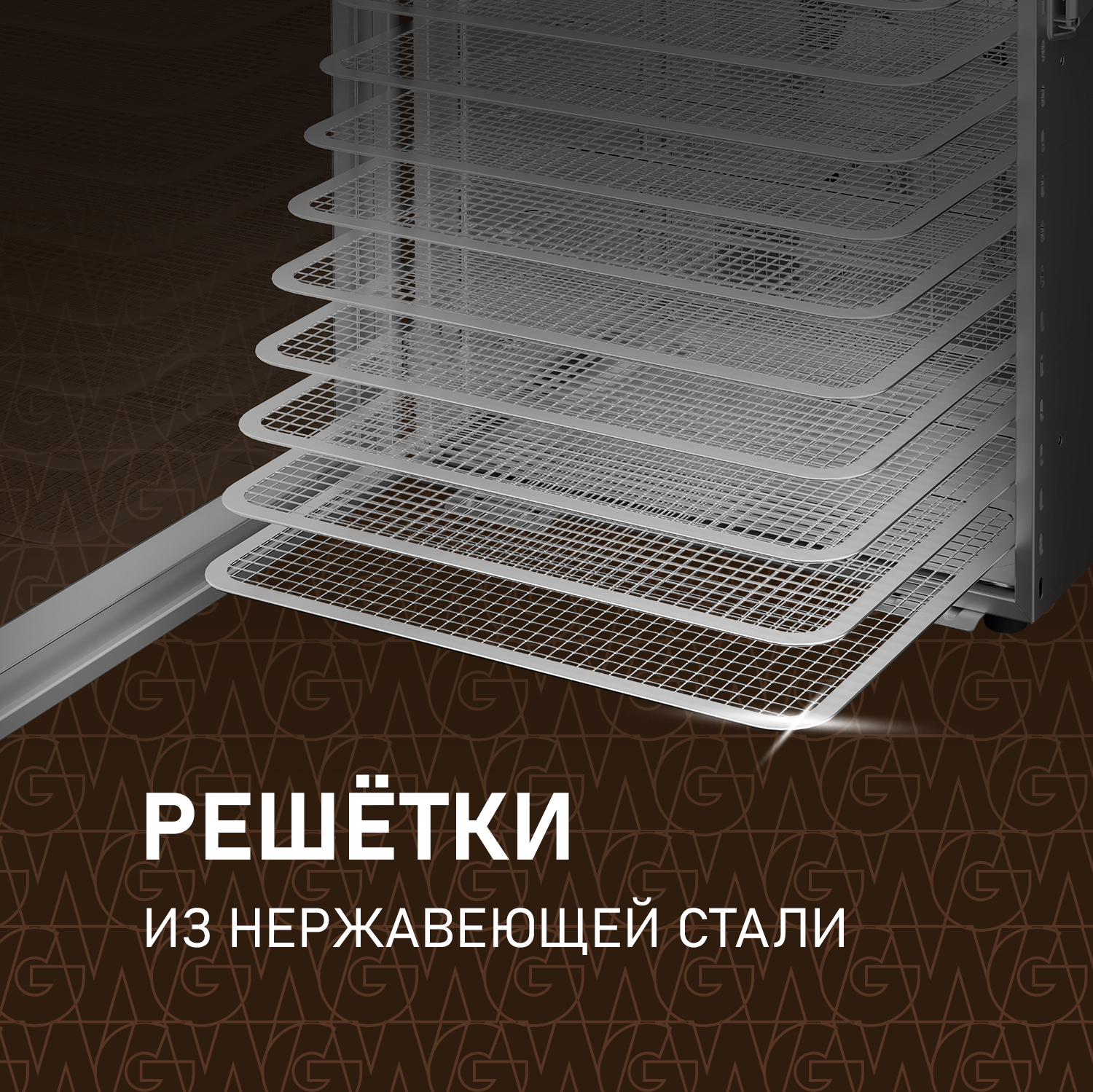 | Комплектация: | Решётки - 16 шт., Поддоны для пастилы - 5 шт., Сетки для трав - 5 шт. |