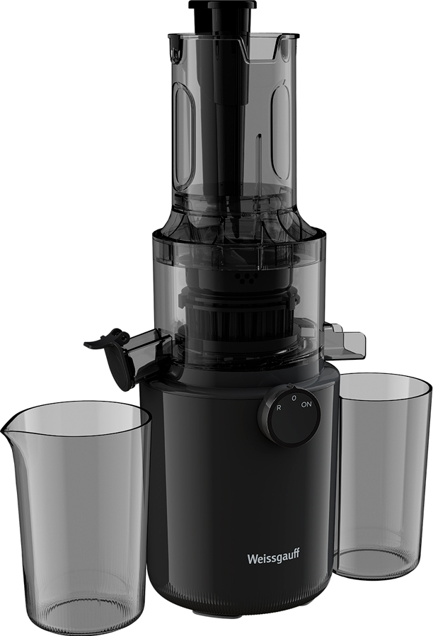 Weissgauff представляет современную шнековую соковыжималку, обладающую механическим управлением, функцией реверса и широким загрузочным отверстием 82 мм благодаря которому можно приготовить сок из фруктов и овощей разной твердости при помощи самого здорового в мире метода холодного отжима без потери питательных веществ и витаминов!