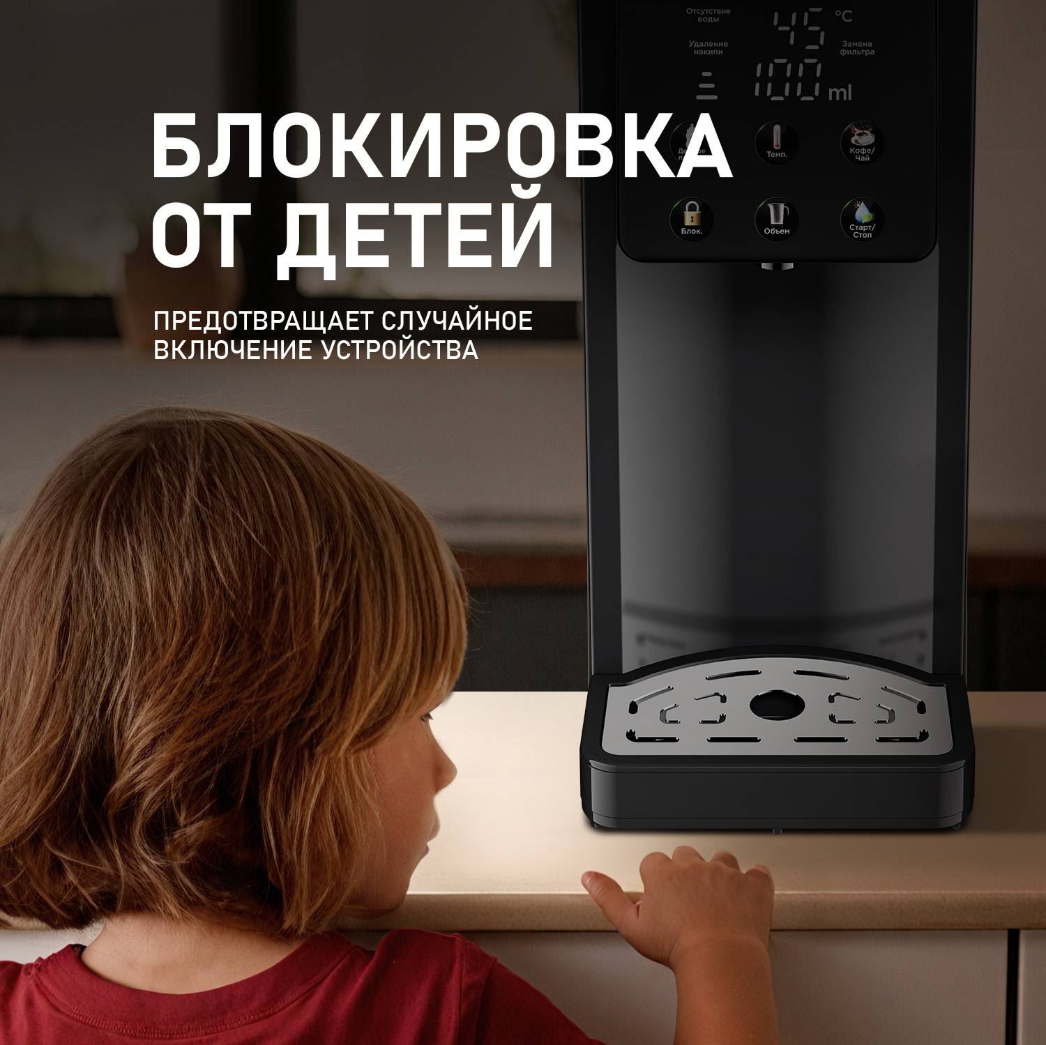 Быстрая функция "Детское питание" - позволит подать воду, нагретую до температуры 40 °C, что идеально подойдет для приготовления детских питательных смесей, а также для разведения сухого молока!