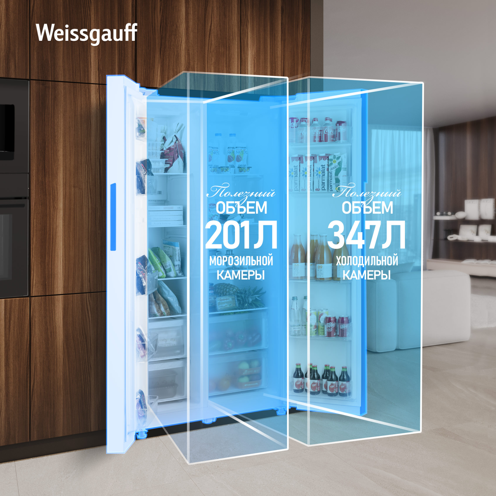 Отдельностоящий холодильник Weissgauff, выполненный в современном европейском дизайне Side-by-Side, обладающий полной системой размораживания Full No Frost и полностью электронным управлением - это соотношение фантастической вместительности, безупречной эргономики внутреннего пространства, технологического совершенства и великолепного дизайна!