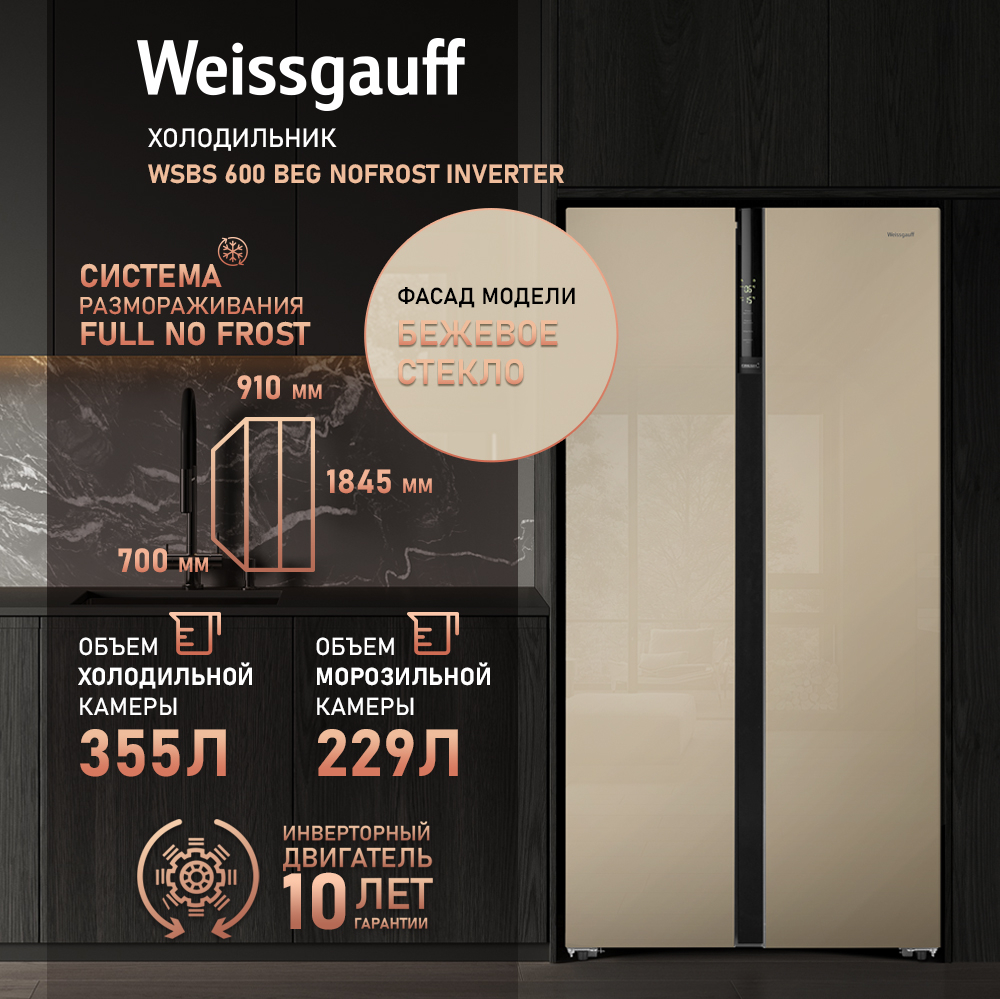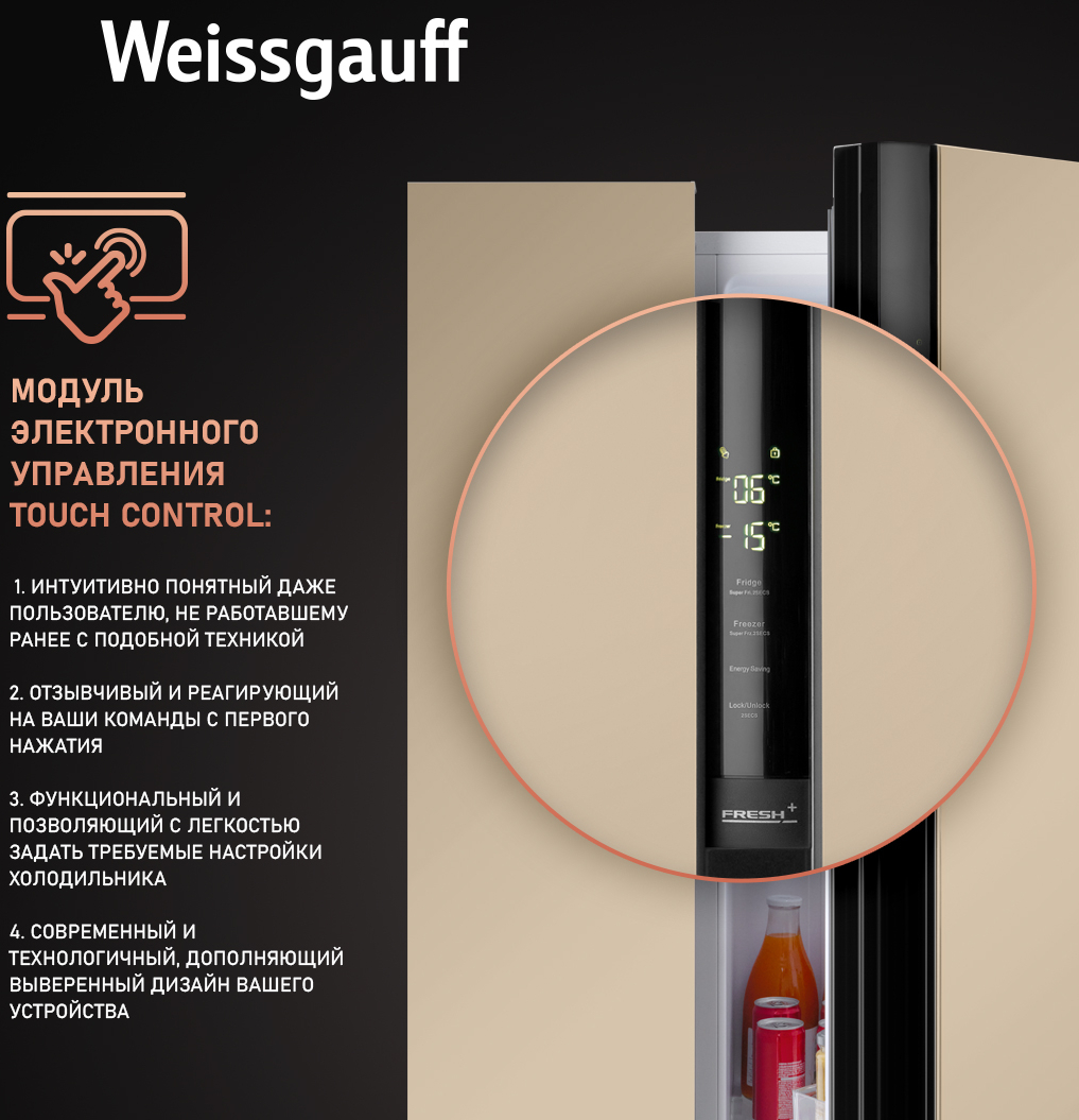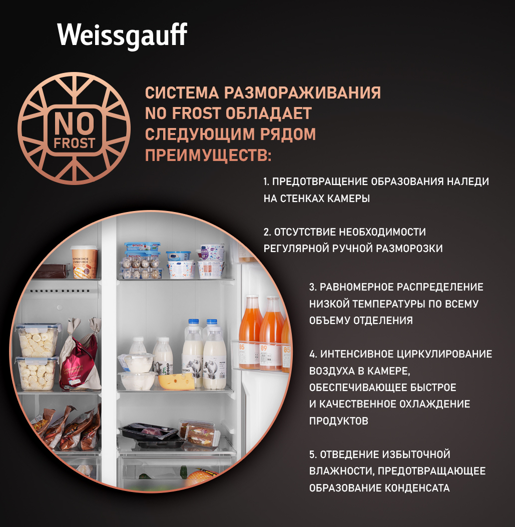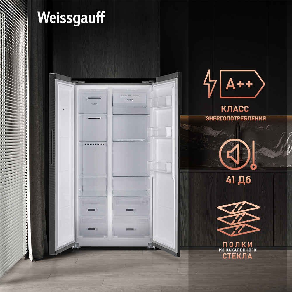Отдельностоящий холодильник Weissgauff, выполненный в современном европейском дизайне Side-by-Side, обладающий полной системой размораживания Full No Frost и полностью электронным управлением - это соотношение фантастической вместительности, безупречной эргономики внутреннего пространства, технологического совершенства и великолепного дизайна!