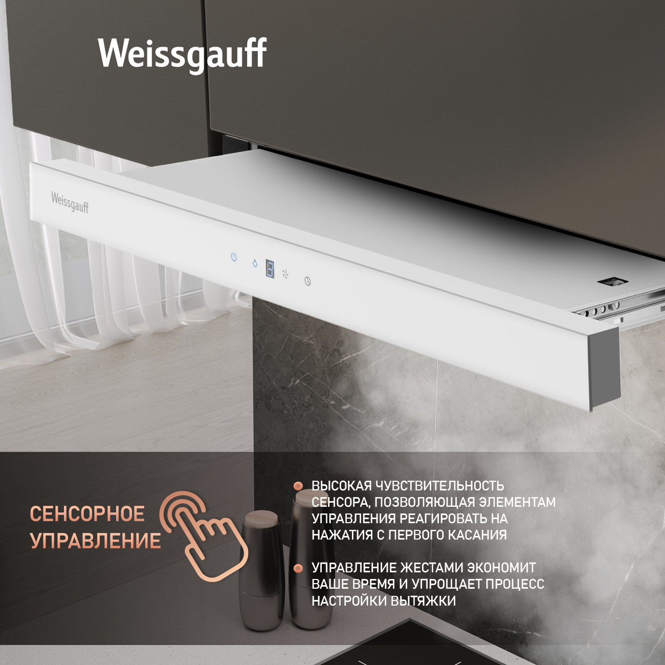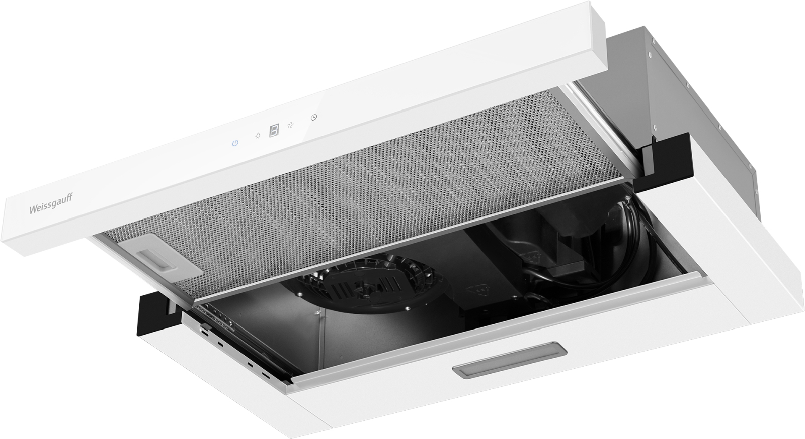 Встраиваемая в верхний подвесной шкаф телескопическая вытяжка от Weissgauff, оснащенная сенсорной панелью управления Touch Control, обладающая впечатляющей производительностью 600 м3/ч и низким уровнем шума 46 дБ, выполненная в белом цвете, не только порадует своей функциональностью, но и станет настоящим украшением вашей кухни!