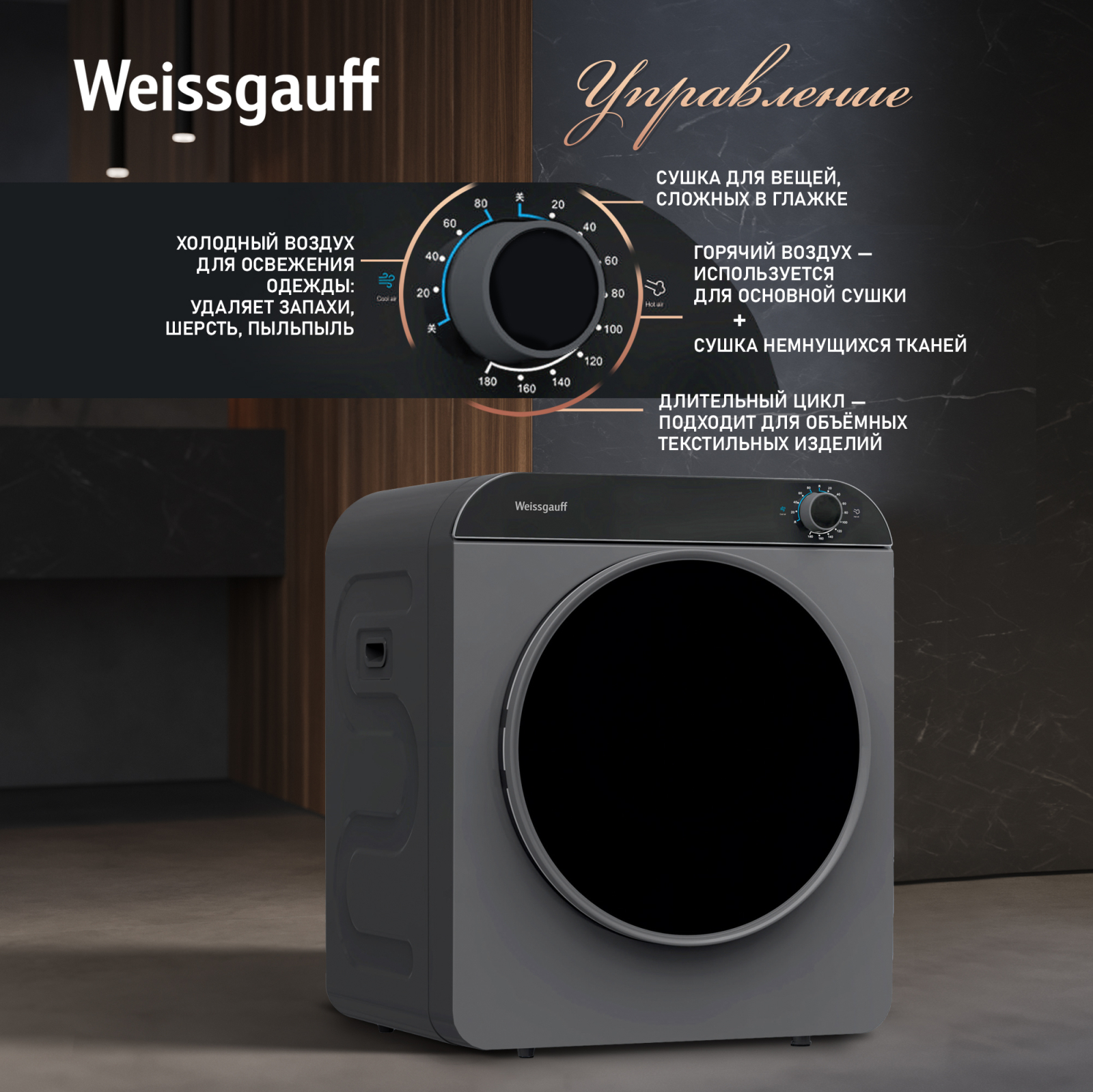 • Стерилизация при высокой температуре во время сушки убивает бактерии и вирусы на одежде, удаляет неприятные запахи и обеспечивает безопасность для вас и вашей семьи!