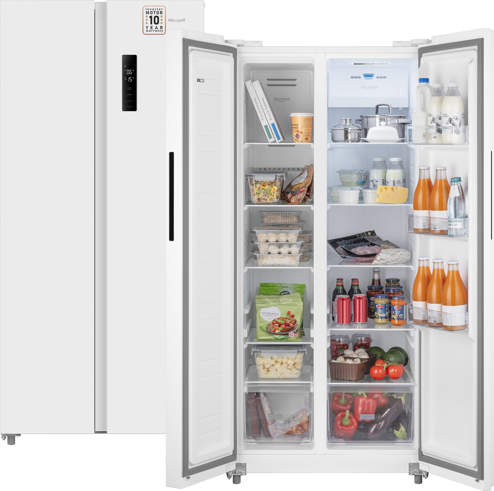 Отдельностоящий холодильник Weissgauff, выполненный в современном европейском дизайне Side-by-Side в белом цвете, обладающий полной системой размораживания Full No Frost и полностью электронным управлением - это соотношение фантастической вместительности, безупречной эргономики внутреннего пространства, технологического совершенства и великолепного дизайна!