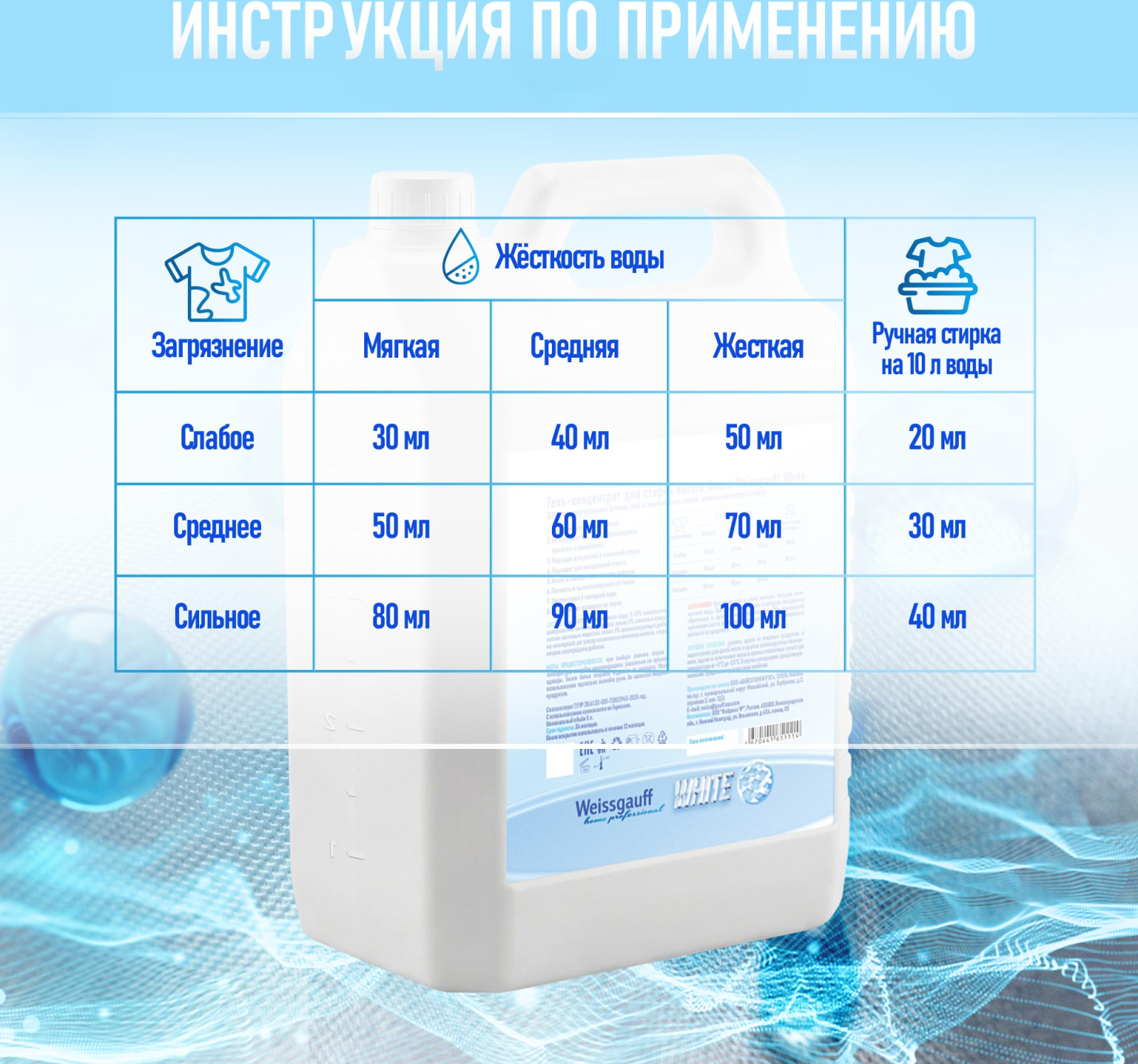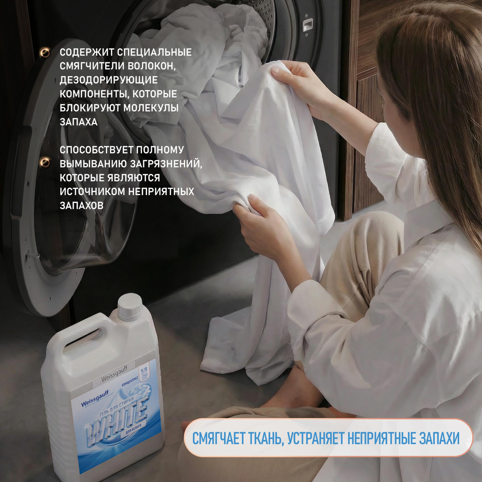 Гель-концентрат для стирки белого белья Weissgauff White объемом 5 литров