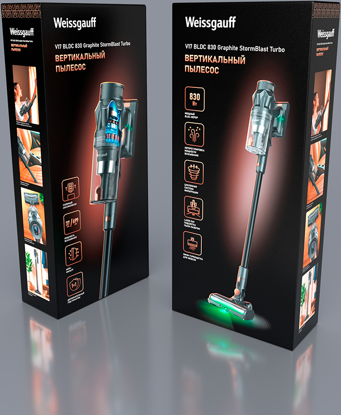 Weissgauff представляет Вашему вниманию новый сверхмощный вертикальный пылесос с циклонной системой фильтрации – которая эффективно разделяет загрязнённый воздух на мусор и очищенный воздушный поток. Более того, он управляется с этим без мешка для сбора пыли. Оснащенный специальной турбощеткой для паркета и ламината с подсветкой зоны уборки, он эффективно удаляет пыль, не повреждая при этом поверхности пола. Инверторный двигатель нового поколения позволит ему справиться даже с самыми сложными загрязнениями! Настенная подставка, идущая в комплекте к данному устройству, позволит грамотно разместить пылесос в комнате, не занимая при этом излишне много места. Удобная съемная рукоятка позволит использовать эту модель и как полноценный вертикальный пылесос, и как портативный независимый блок. А комплект дополнительных аксессуаров лишь дополнительно расширит возможности этого великолепного устройства!