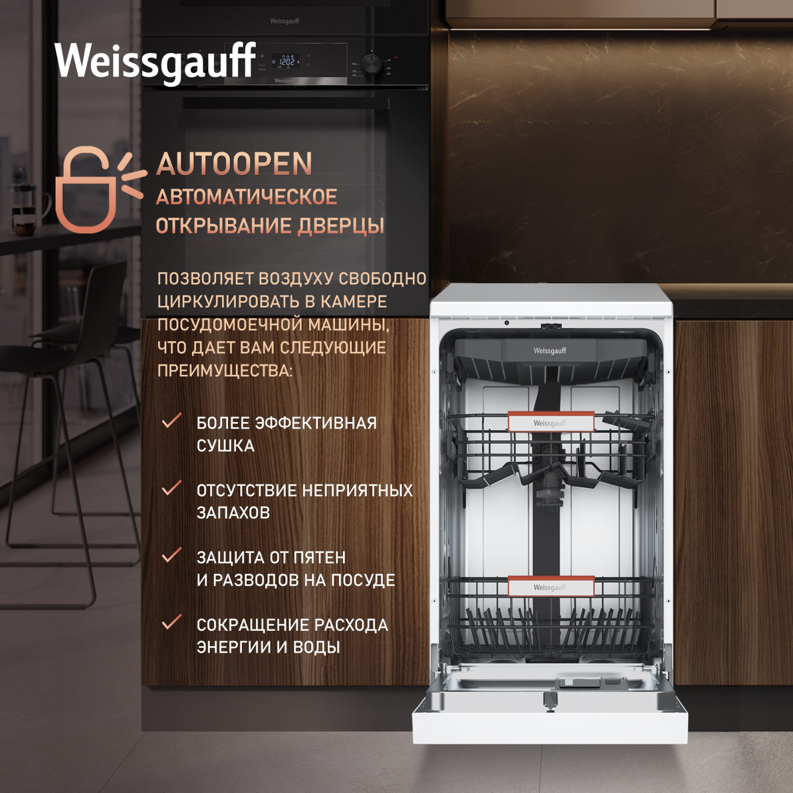 Посудомоечная машина c авто-открыванием и инвертором