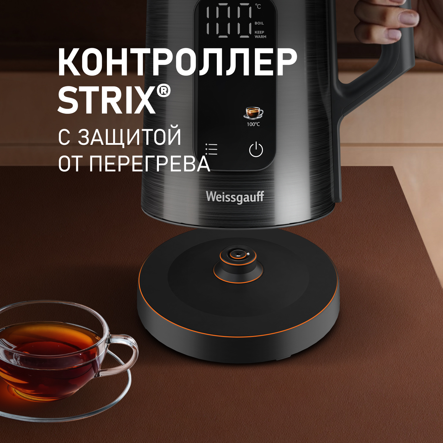 • Контроллер Strix - осуществляет автоматическое отключение нагрева воды при достижении заданной температуры. Это позволяет предотвратить перегрев и возможные аварийные ситуации, обеспечивая безопасность использования чайника!