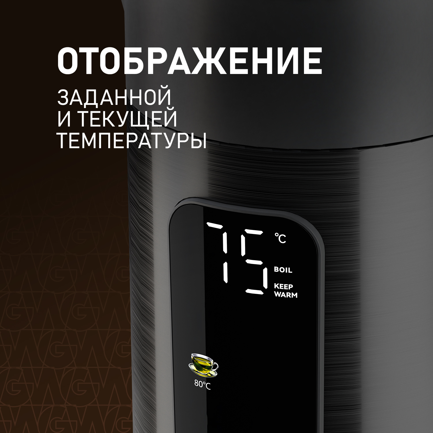 • Отображение заданной и текущей температуры, всегда поможет вам понять, когда вода уже достигла требуемого уровня нагрева, а когда еще необходимо немного подождать!
