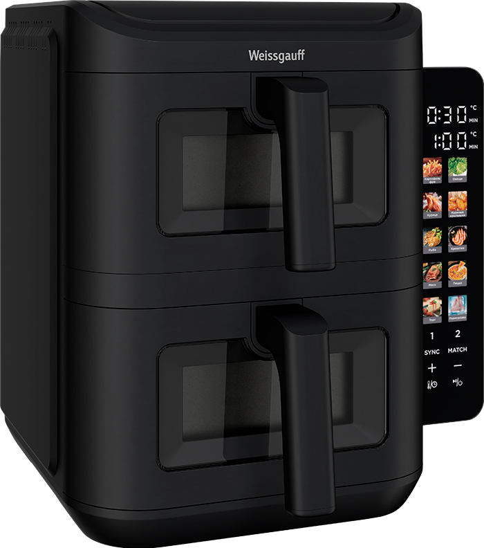 Аэрогриль Weissgauff с двумя вертикальными корзинами с уникальным цветным складным дисплеем — это современное и практичное решение эффективного использования пространства, позволяет готовить сразу несколько блюд, несмотря на компактные размеры. Объём 11 литров и мощность 2800 Вт делают этот прибор не только функциональным, но и стильным украшением вашей кухни. Технология обжарки горячим воздухом сохраняет вкусовые качества и полезные свойства продуктов. Простое управление и широкий выбор программ делают процесс приготовления удивительно приятным!