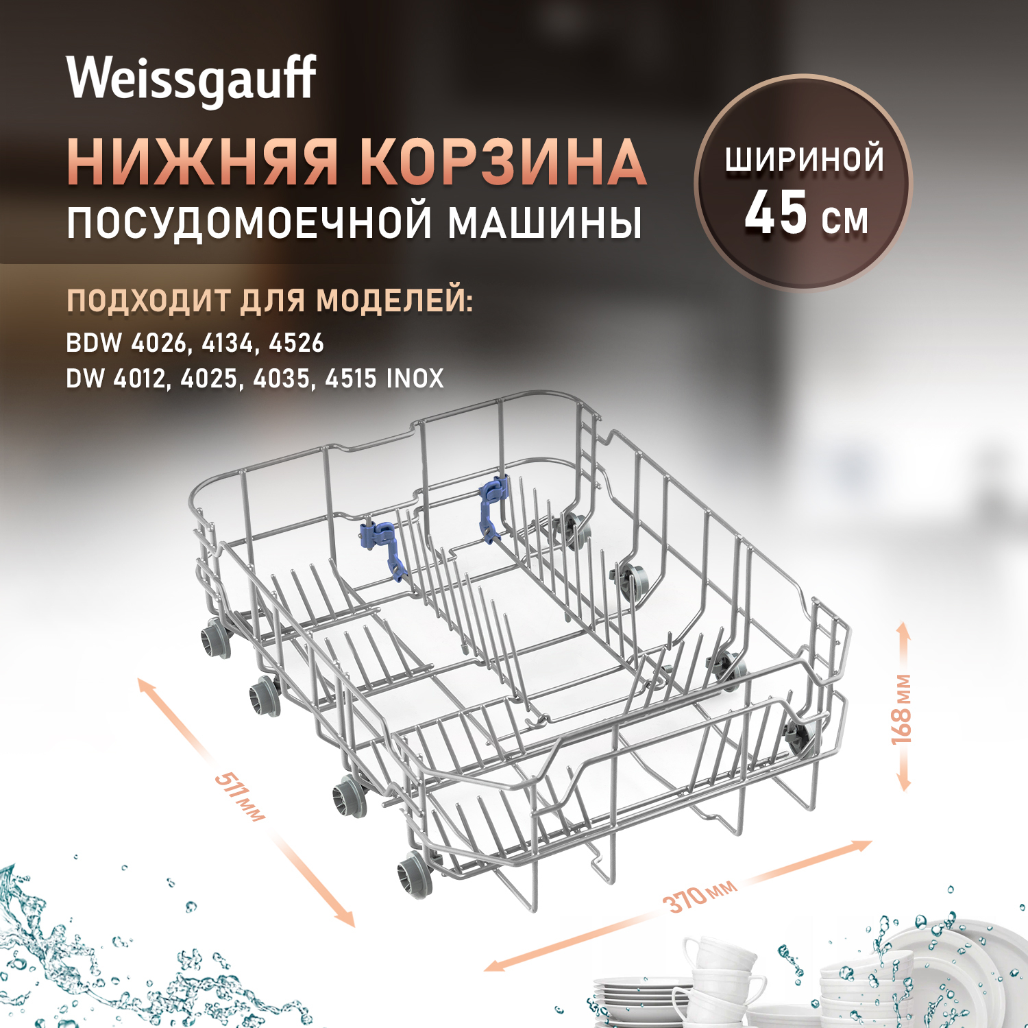 Нижняя корзина для посудомоечной машины Weissegauff шириной 45 см (432714)