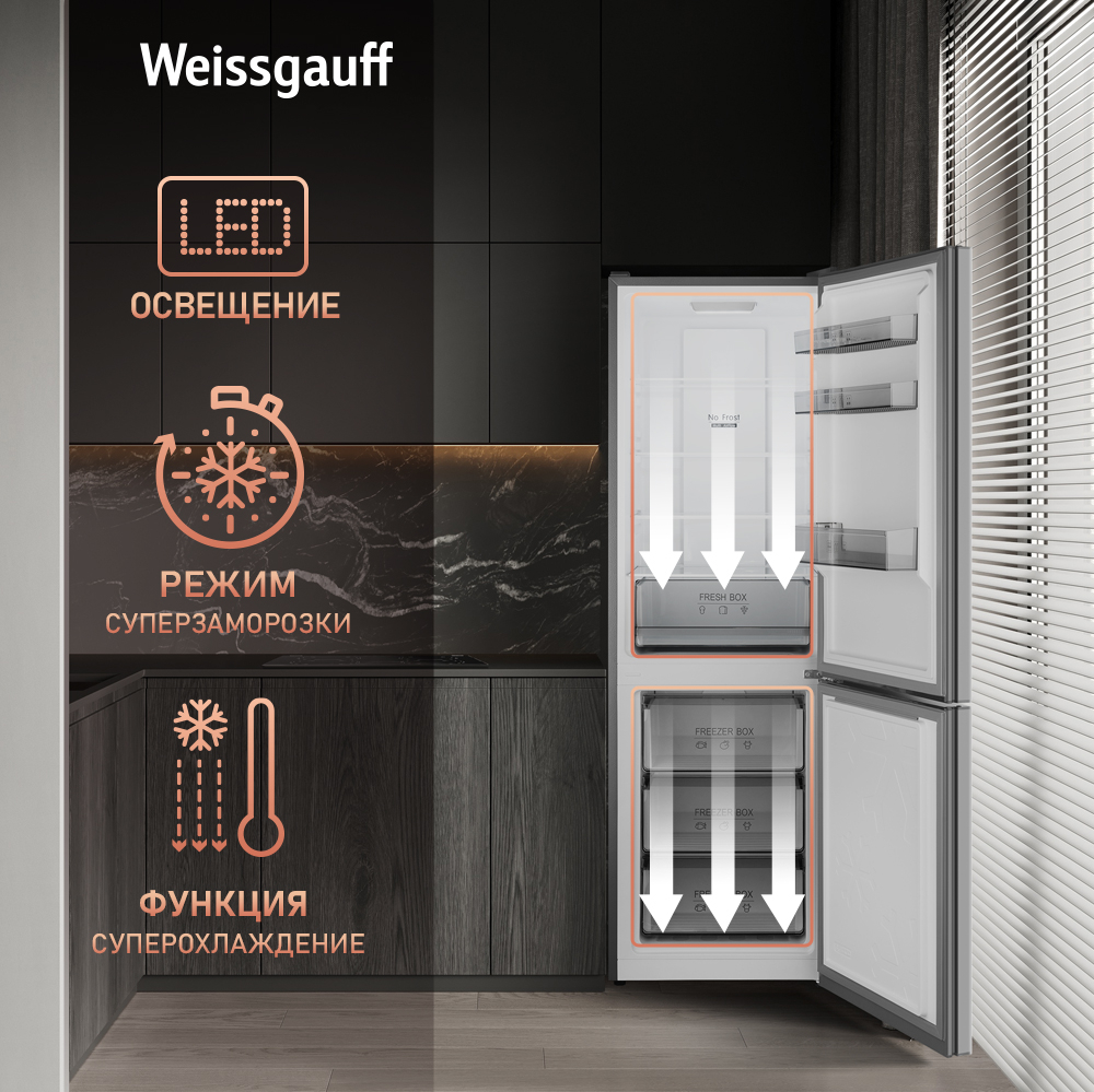 Полки, выполненные из закаленного стекла, это уверенность в их надежности и долговечности, ведь мы в Weissgauff знаем, как важно внимание к каждой детали, когда речь идет о действительно качественной бытовой технике!