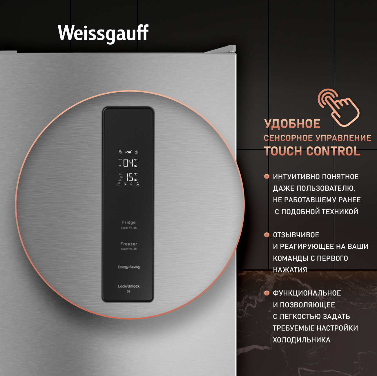Отдельностоящий холодильник Weissgauff оснащенный инверторным двигателем, выполненный в цвете "нержавеющая сталь", обладающий полной системой размораживания Total No Frost и фантастической вместительностью - это соотношение превосходной эргономики внутреннего пространства, технологического совершенства и великолепия внешнего дизайна!