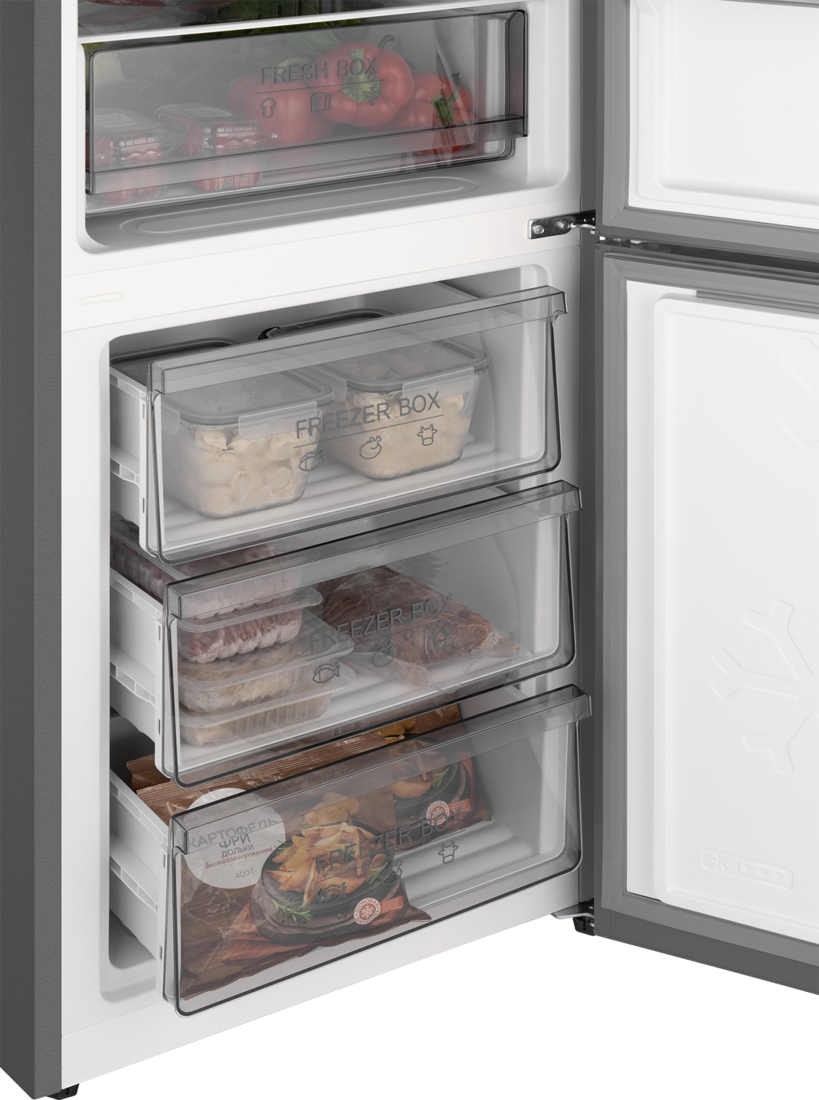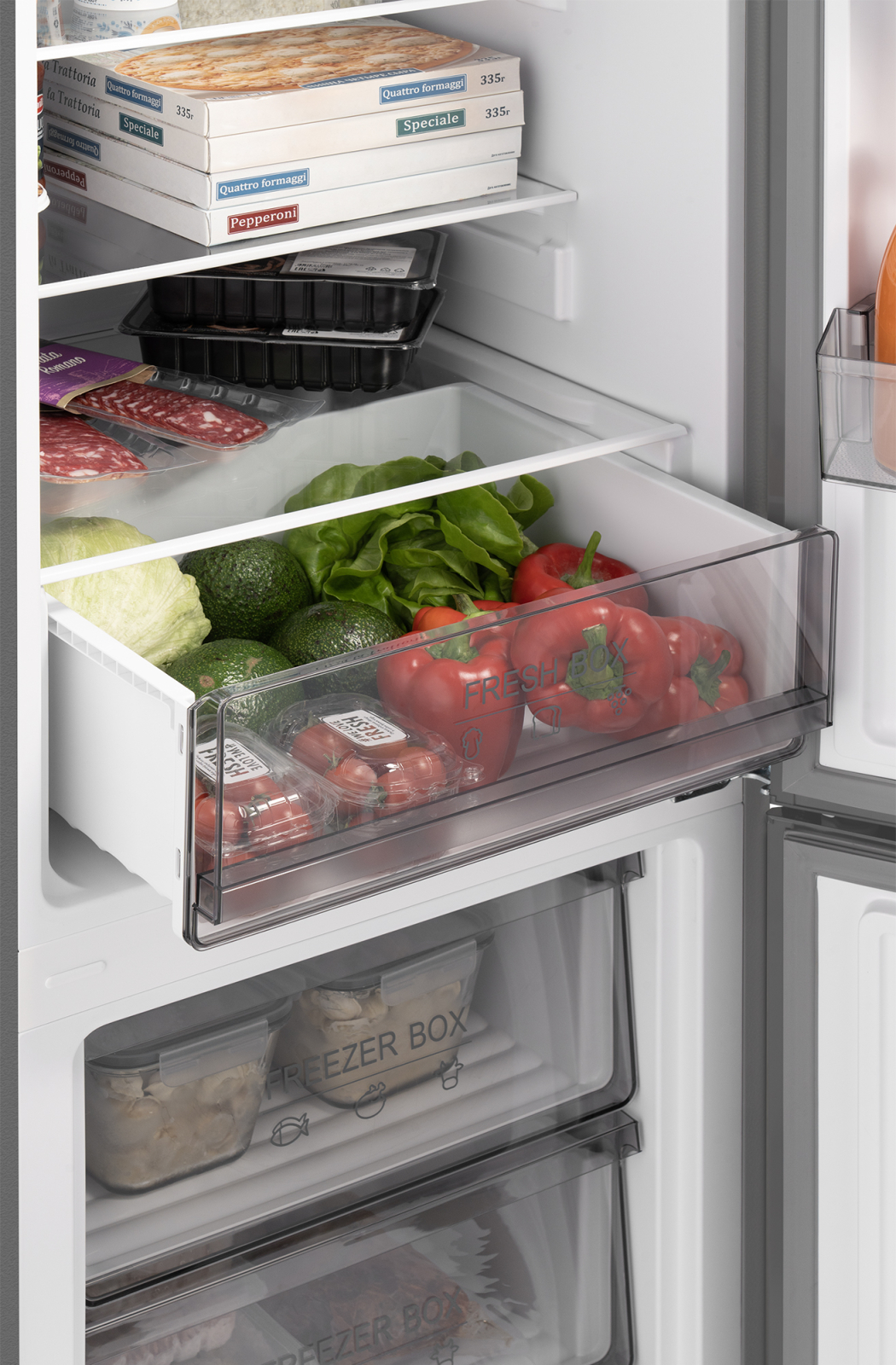Зона свежести, оснащенная функцией контроля влажности, позволит подобрать оптимальный режим для хранения овощей, фруктов и других продуктов, требовательных к поддержанию особого микроклимата.