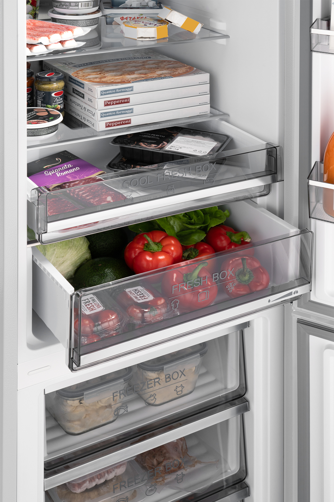 Зона свежести, оснащенная функцией контроля влажности, позволит подобрать оптимальный режим для хранения овощей, фруктов и других продуктов, требовательных к поддержанию особого микроклимата.