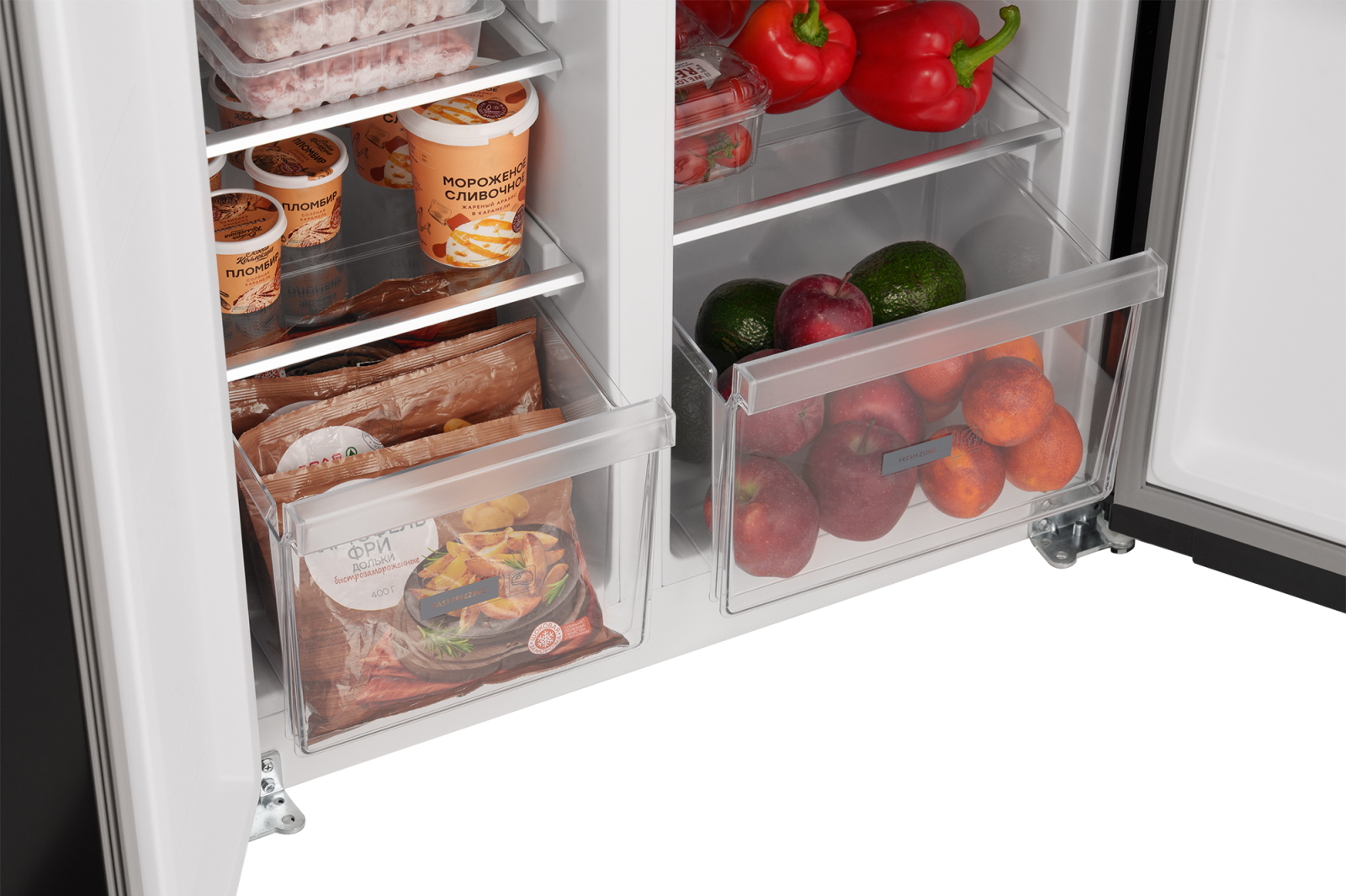 Отдельностоящий холодильник Weissgauff, выполненный в современном европейском дизайне Side-by-Side, обладающий полной системой размораживания Full No Frost и полностью электронным управлением - это соотношение фантастической вместительности, безупречной эргономики внутреннего пространства, технологического совершенства и великолепного дизайна!