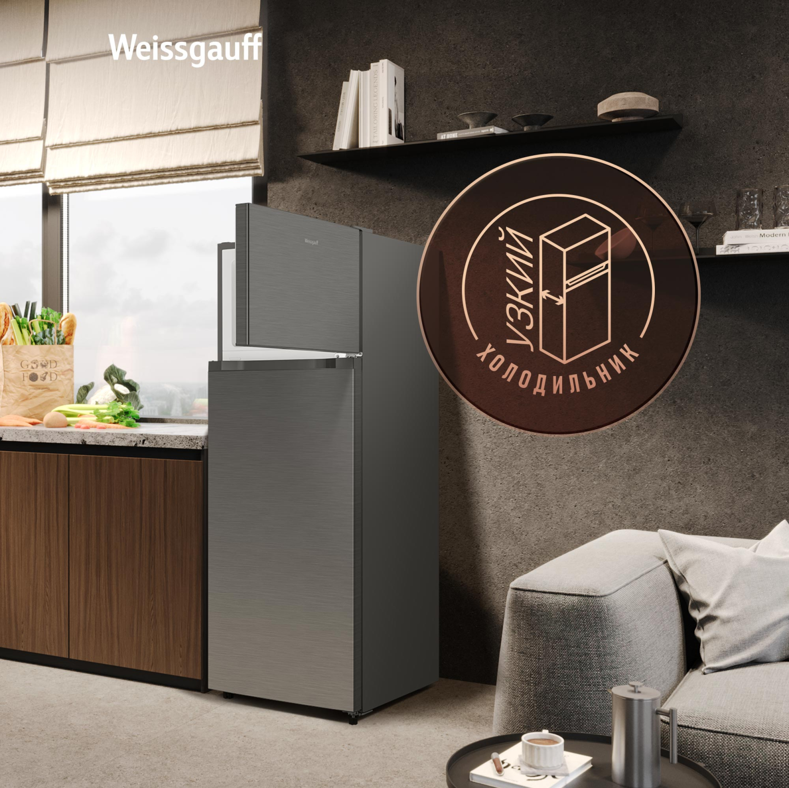 Отдельностоящий холодильник Weissgauff выполненный в темно-сером цвете, обладающий компактными размерами и отличной вместительностью - это соотношение превосходной эргономики внутреннего пространства, технологического совершенства и великолепия внешнего дизайна!