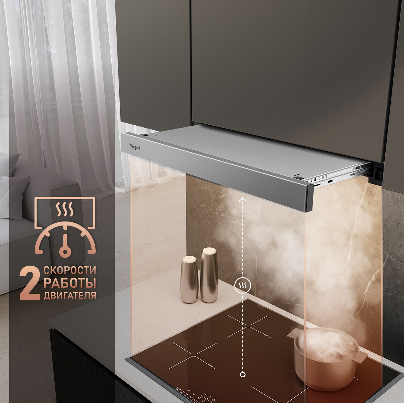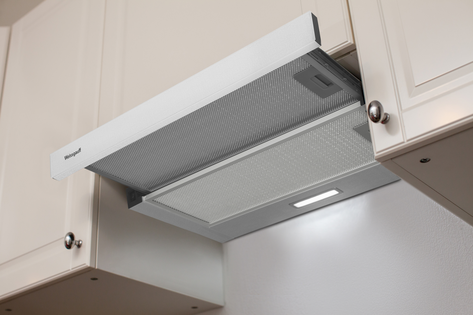 Встраиваемая в верхний подвесной шкаф телескопическая вытяжка от Weissgauff, обладающая впечатляющей производительностью 600 м3/ч и низким уровнем шума 46 дБ, выполненная в цвете "нержавеющая сталь", не только порадует своей функциональностью, но и станет настоящим украшением вашей кухни!