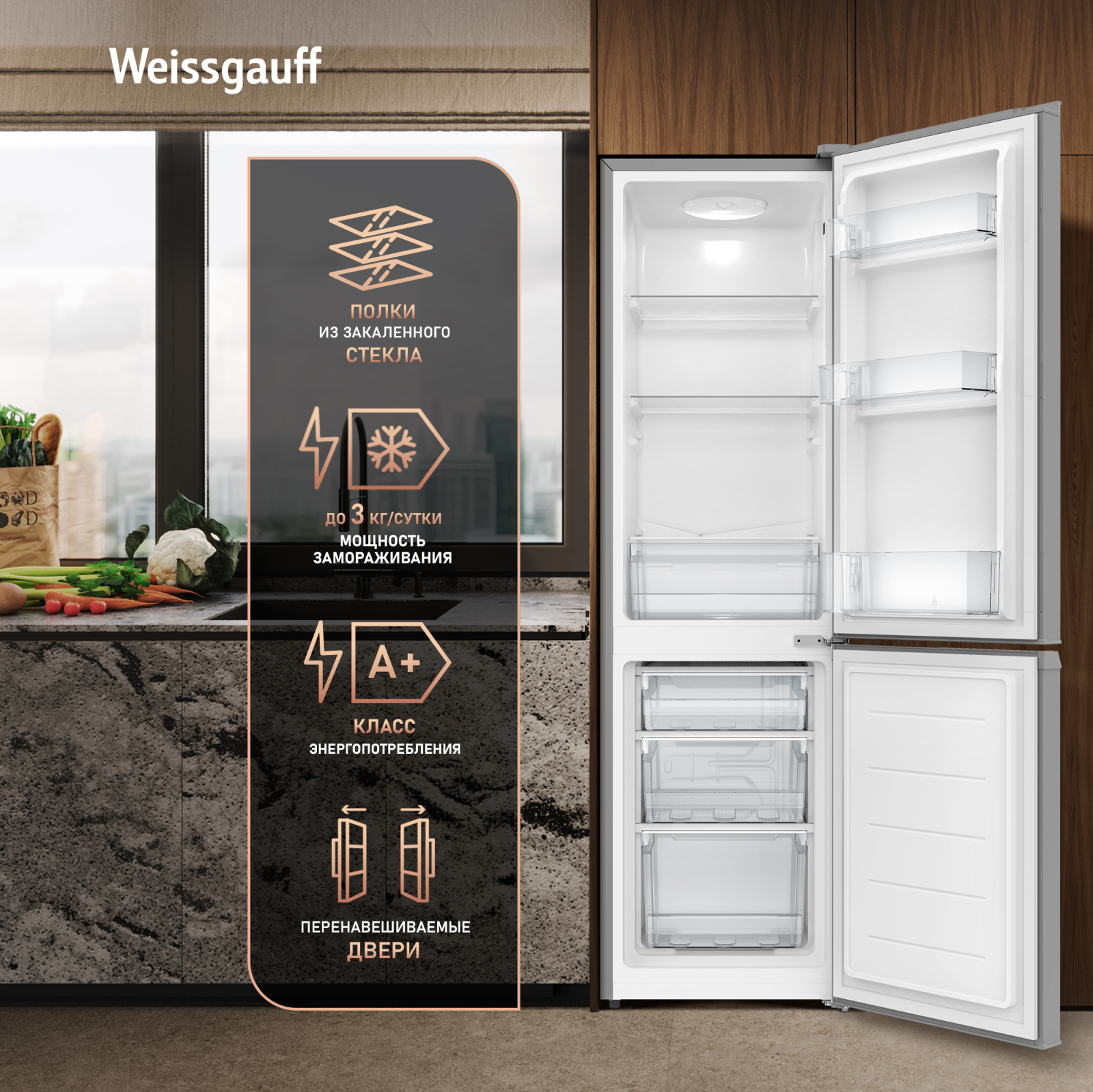 Полки, выполненные из закаленного стекла, это уверенность в их надежности и долговечности, ведь мы в Weissgauff знаем, как важно внимание к каждой детали, когда речь идет о действительно качественной бытовой технике!