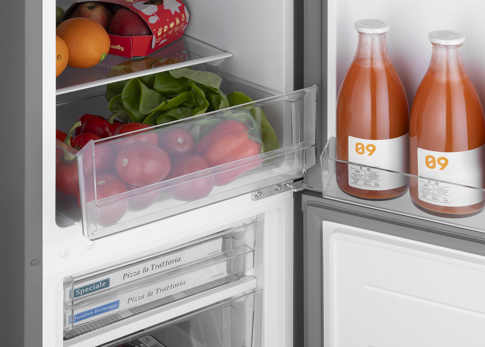 Капельная система размораживания - это современное и технологичное решение, позволяющее сохранить естественный вкус, запах, внешний вид и свежесть продуктов, не подвергая их высушиванию через принудительную циркуляцию воздуха. Охлаждение при этом производится испарителем, который находится за пределами рабочих камер устройства, что обеспечивает сохранение естественной влажности внутри, одновременно с этим препятствуя образованию наледи на стенках устройства.