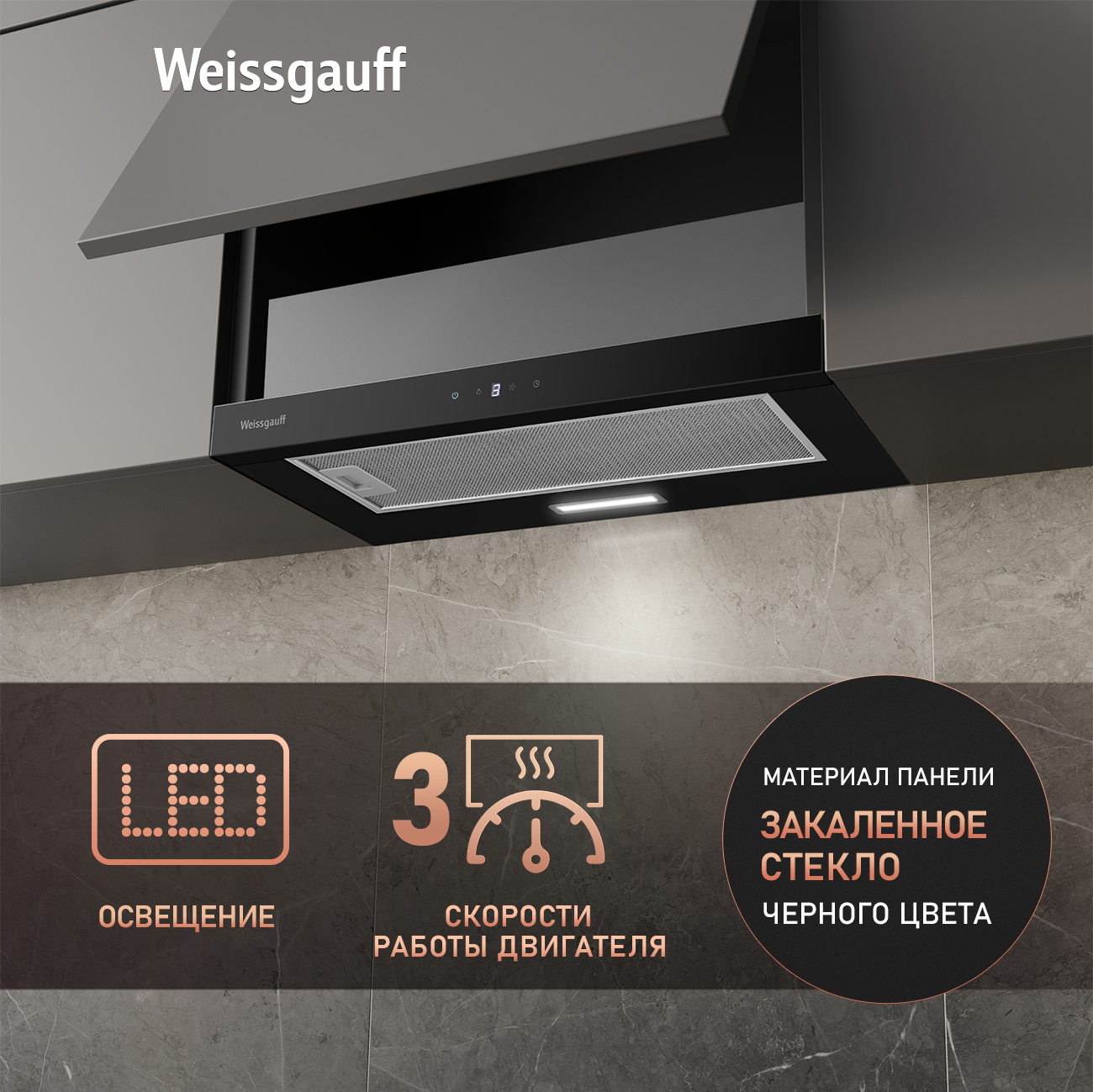 Эффективная работа в помещении площадью до 16 м2 - это гарантия того, что после установки вытяжки Weissgauff, обновление воздуха будет соответствовать всем требуемым нормам, сохраняя ваше здоровье на долгие годы!