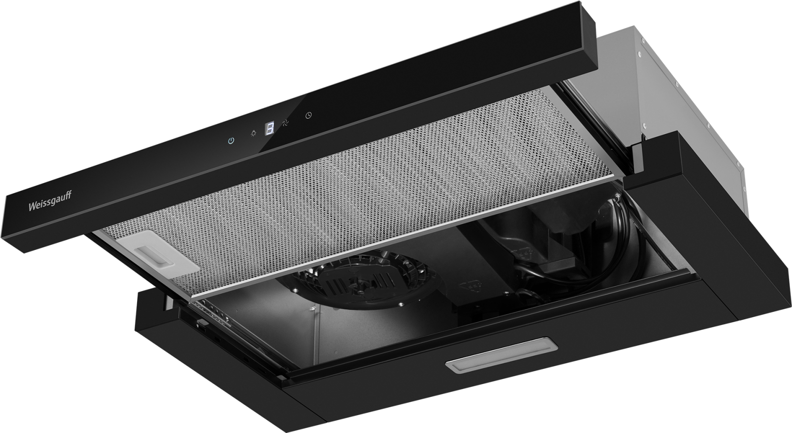 Встраиваемая в верхний подвесной шкаф телескопическая вытяжка от Weissgauff, оснащенная сенсорной панелью управления Touch Control, обладающая впечатляющей производительностью 600 м3/ч и низким уровнем шума 46 дБ, выполненная в чёрном цвете, не только порадует своей функциональностью, но и станет настоящим украшением вашей кухни!