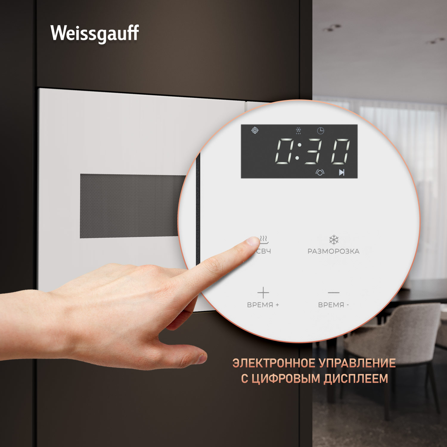 Дизайн, выполненный в белом цвете, станет финальным штрихом в совершенстве великолепного облика этой модели. Каждый раз, взаимодействуя с вашей микроволновой печью от Weissgauff, вы будете чувствовать, что это не только функциональное устройство, но и настоящее украшение вашей кухни!