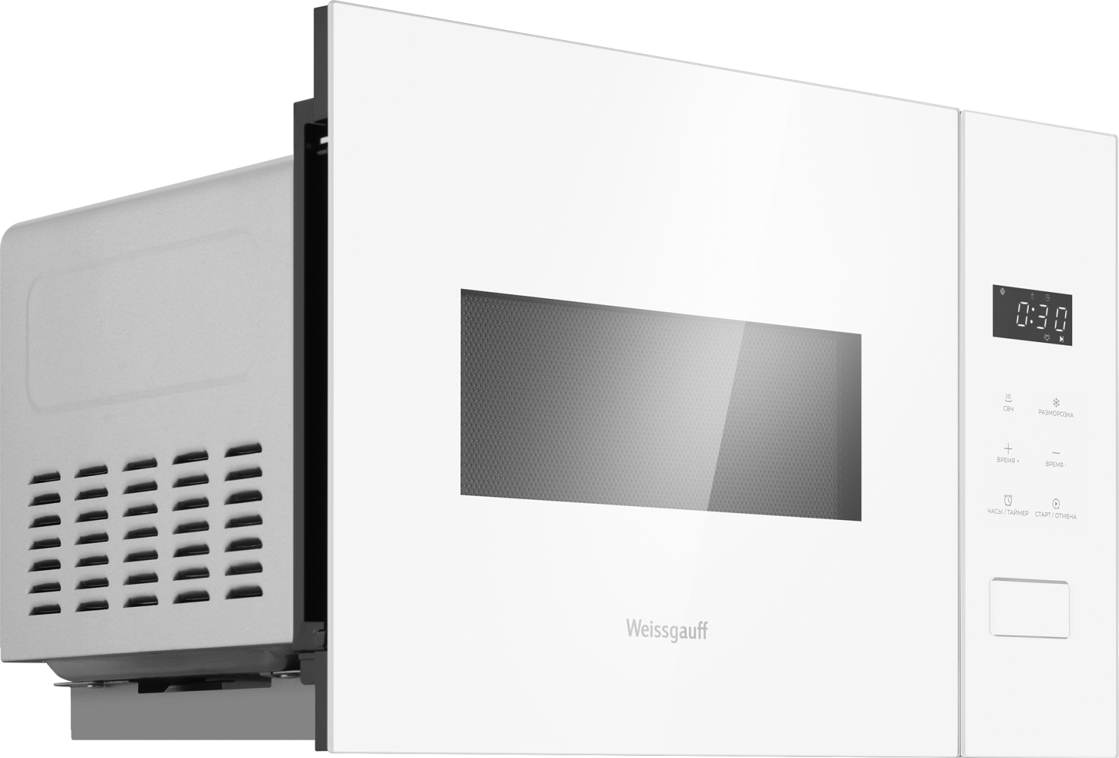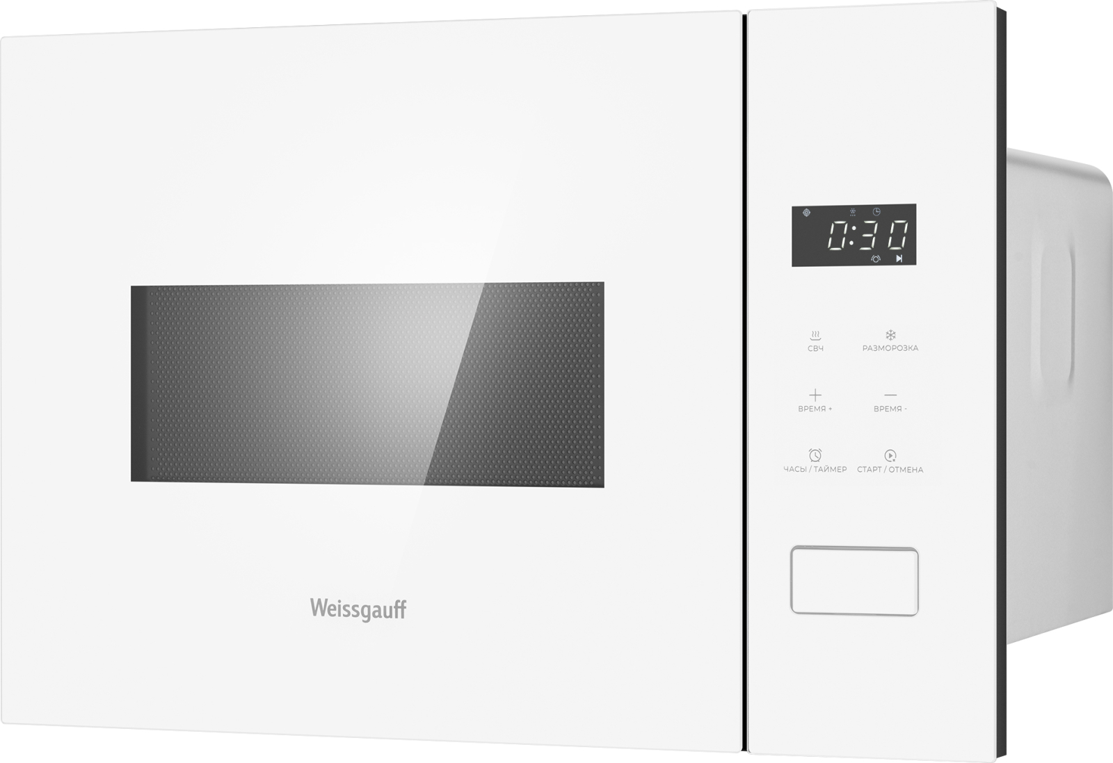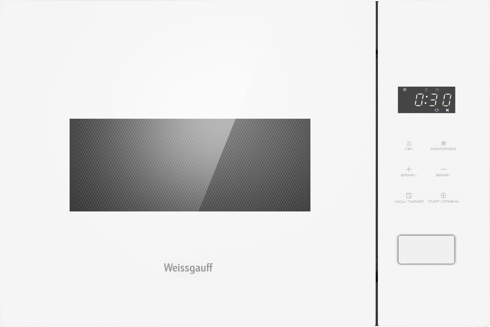 Встраиваемая микроволновая печь Weissgauff шириной 45 сантиметров, выполненная в белом закаленном стекле с сенсорной панелью управления, имеющая объем 20 литров - это настоящее воплощение основного принципа Weissgauff: "Качество, доступное каждому"