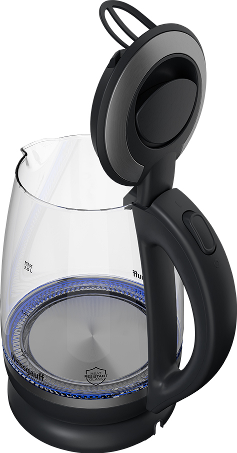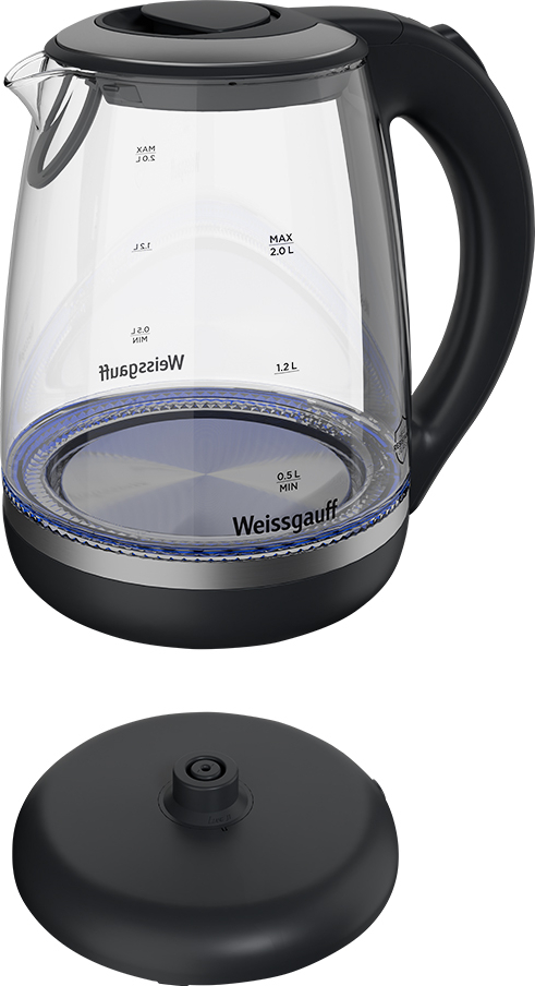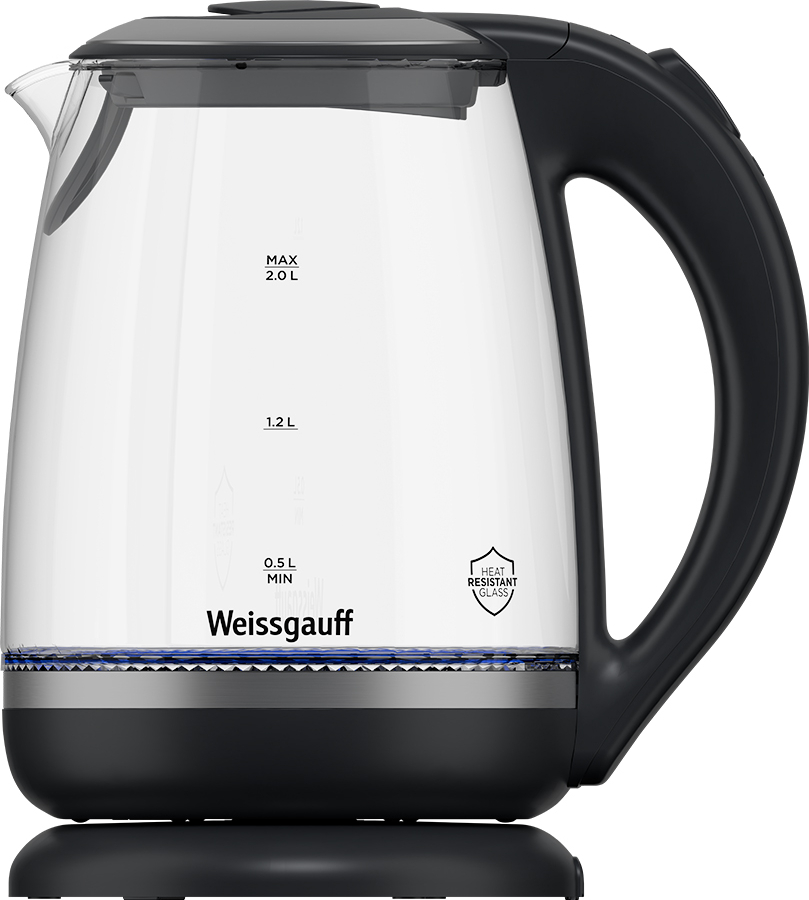 Вместительный электрический чайник от Weissgauff, выполненный в черном цвете и элегантным прозрачным корпусом из закаленного термостойкого стекла с внутренней подсветкой, обладает объемом 2 литра и автоотключением после закипания и без воды, обеспечит удобство и безопасность использования электрического чайника на вашей любимой кухне!