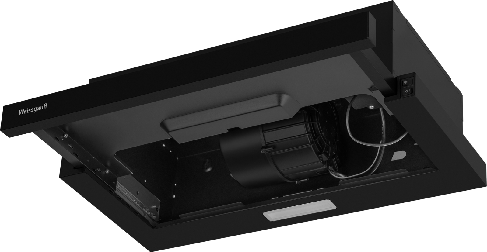 Встраиваемая в верхний подвесной шкаф телескопическая вытяжка от Weissgauff, обладающая впечатляющей производительностью 600 м3/ч и низким уровнем шума, выполненная в черном цвете, не только порадует своей функциональностью, но и станет настоящим украшением вашей кухни!