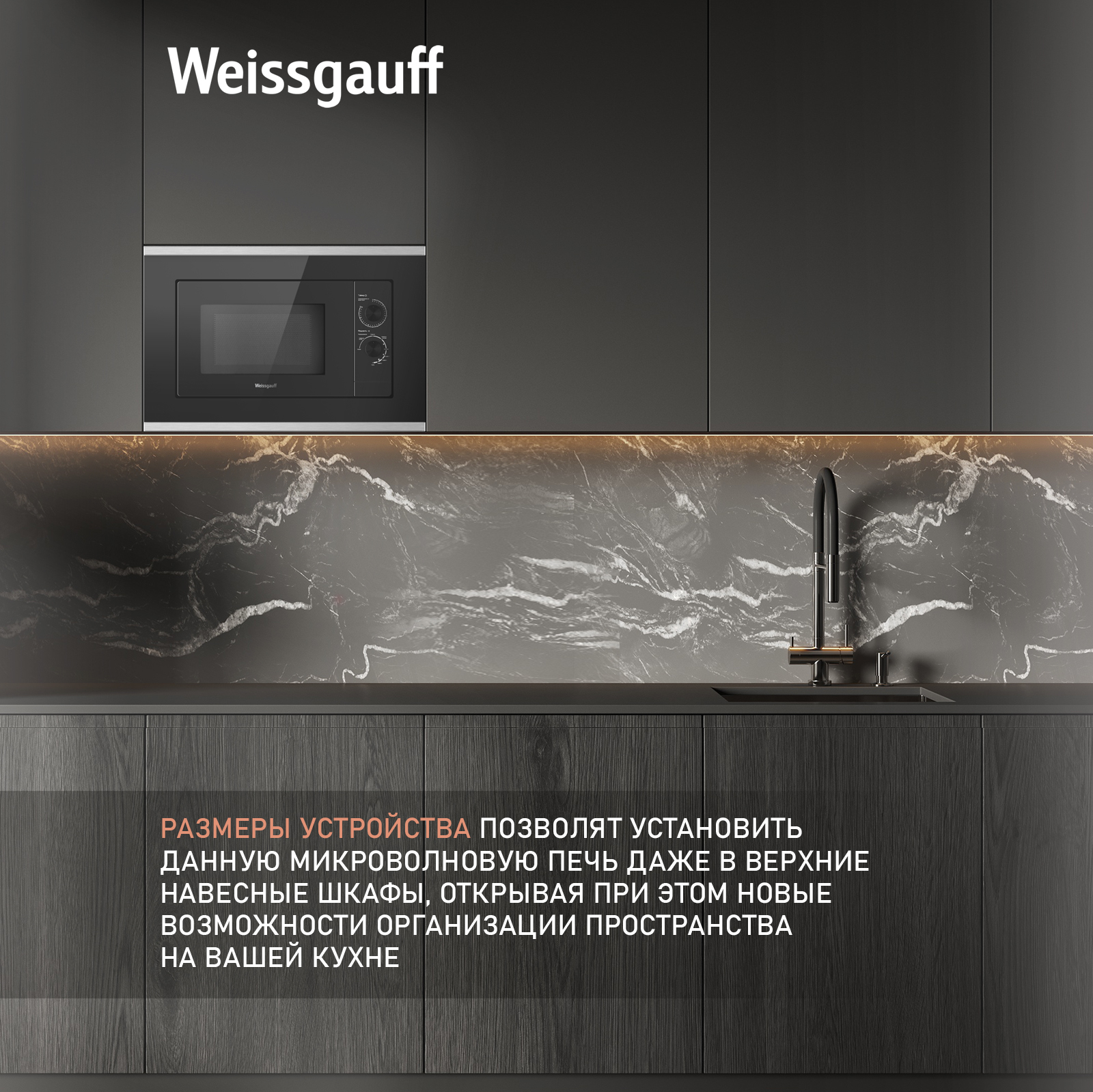 Компактные размеры устройства позволят установить данную микроволновую печь даже в верхние навесные шкафы, открывая при этом новые возможности организации пространства на вашей кухне!