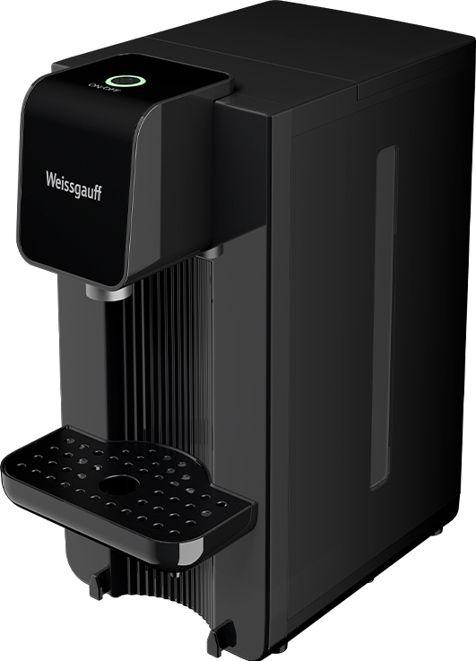 Вместительный и функциональный термопот от Weissgauff, оснащенный проточным нагревателем, позволяющим получить горячую воду буквально за 5-10 секунд, выполненный в чёрном цвете, обладает баком для воды объемом 2,5 литра и возможностью нагрева до температуры в 95 °C.