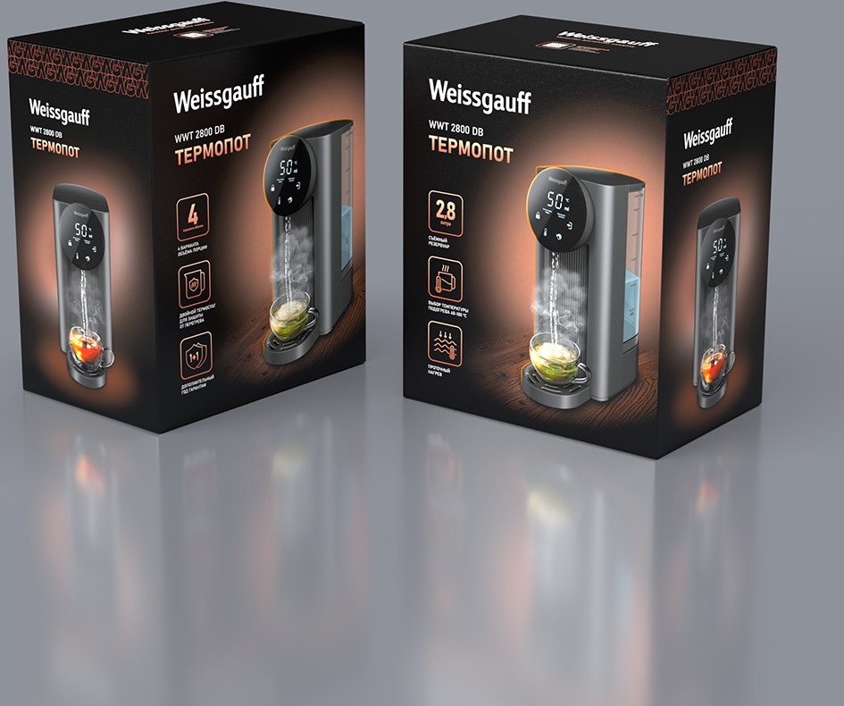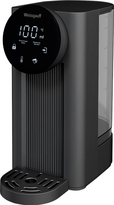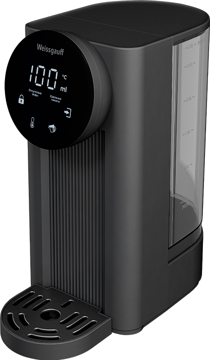 Вместительный и функциональный термопот от Weissgauff, оснащенный проточным нагревателем, позволяющим получить горячую воду буквально за 5-10 секунд, выполненный в чёрном цвете, обладает съемным баком для воды объемом 2,8 литра, возможностью поддержания требуемой температуры в диапазоне от 40 до 100 °C, а также 8 уровнями регулировки нагрева.