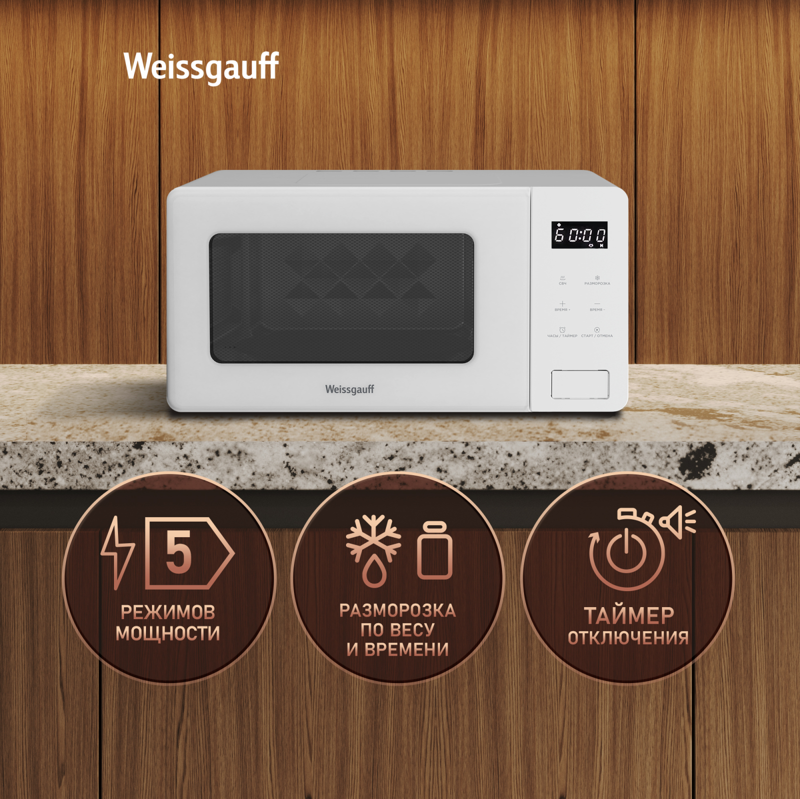 • Дизайн, выполненный в белом закаленном стекле, станет финальным штрихом в совершенстве великолепного облика этой модели. Каждый раз, взаимодействуя с вашей микроволновой печью от Weissgauff, вы будете чувствовать, что это не только функциональное устройство, но и настоящее украшение вашей кухни!
