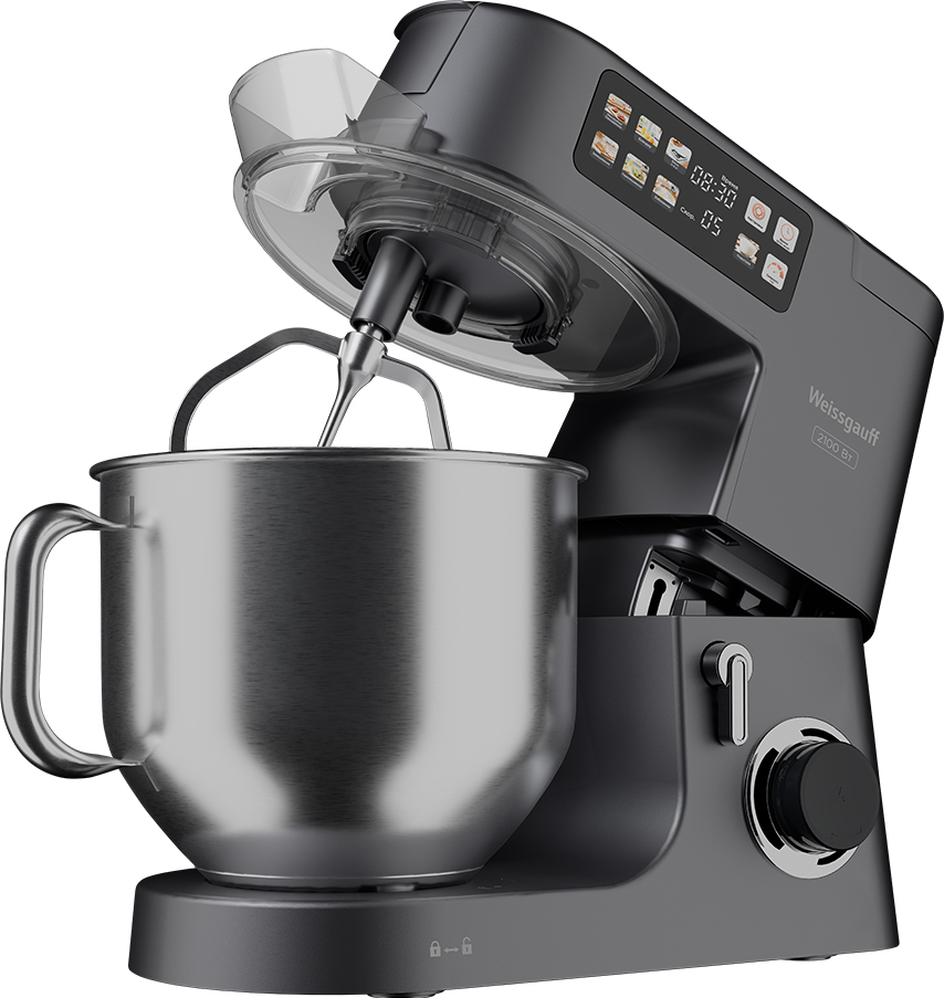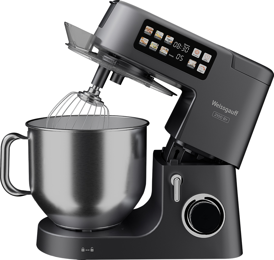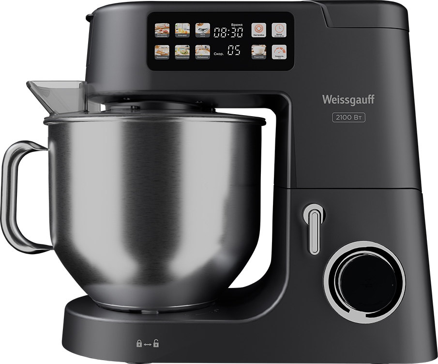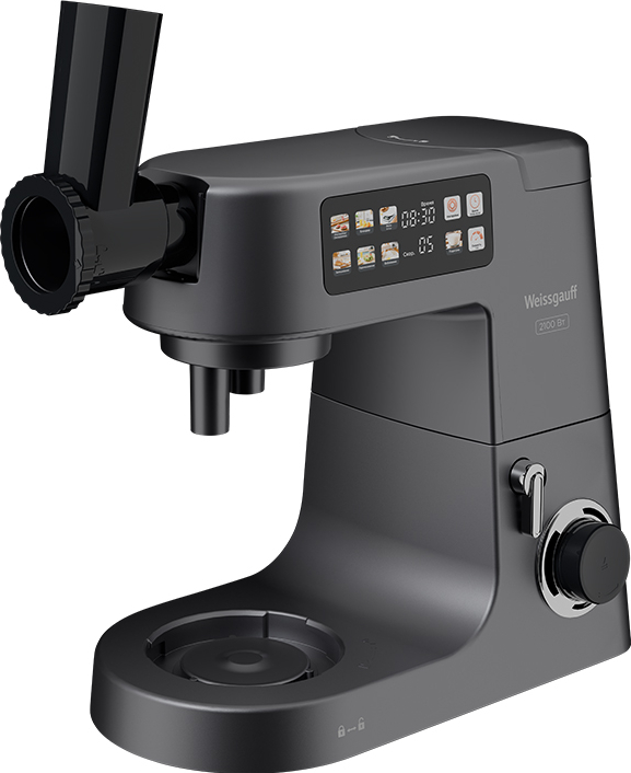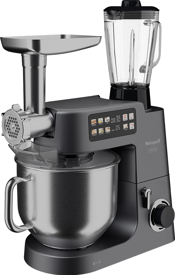 Современная многофункциональная 7 в 1 кухонная машина Weissgauff мощностью 2000 Вт с чашей объемом 8 литров из нержавеющей стали станет стильным дополнением в любой интерьер, а её максимальная комплектация, включающая миксер, мясорубку, тестомес, овощерезку, блендер, расстойку для теста и весы, сделает прибор вашим незаменимым помощником на вашей кухне, который поможет вам воплотить в реальность самые смелые кулинарные идеи!
